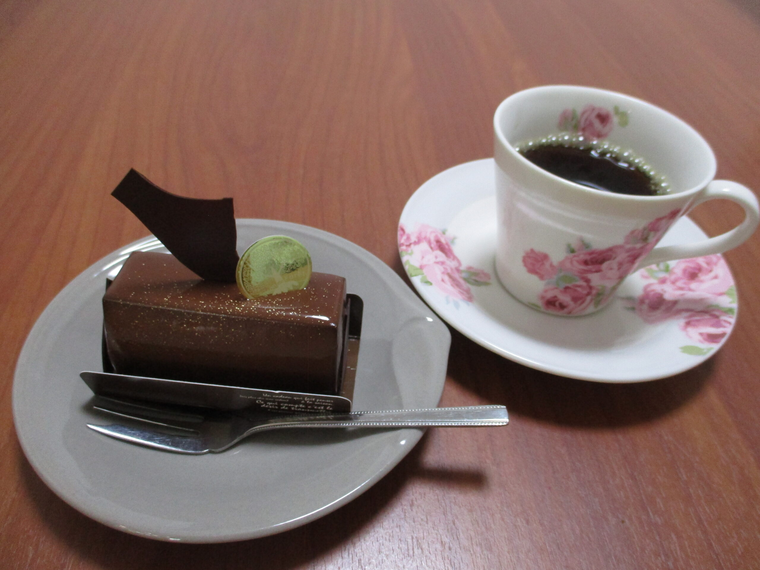 おやつに、チョコレートケーキを召し上がり「濃厚で美味しいね❤」