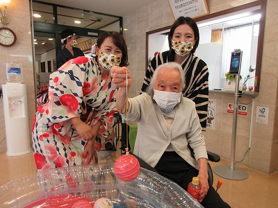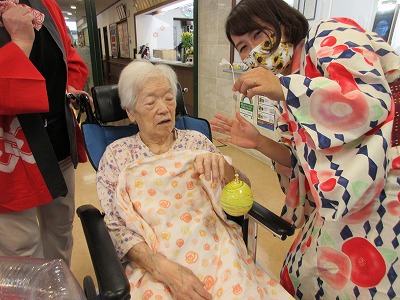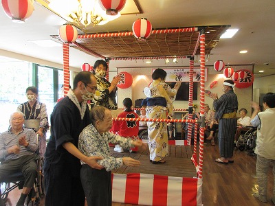 ご入居者と職員とでの盆踊りは盛り上がりました。