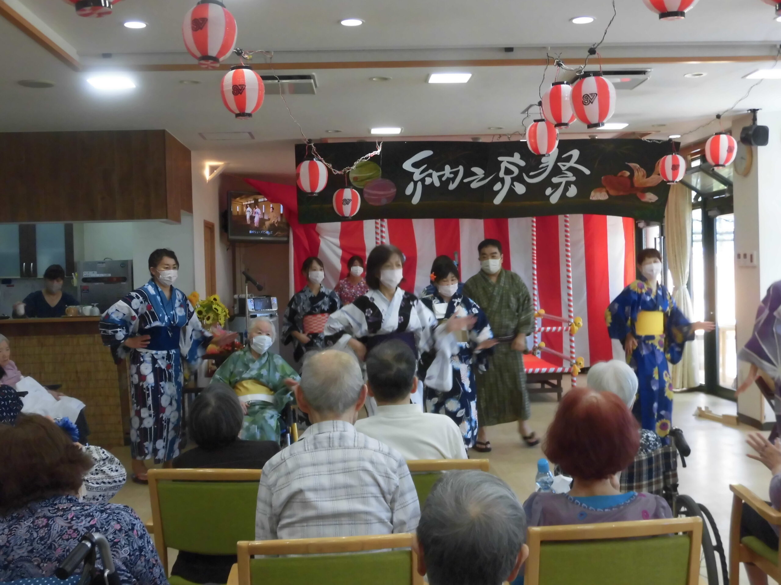 皆様に夏を感じて頂きました。感動のあまり涙ぐんでいる方や、職員の動きに笑いが止まらない方もおり