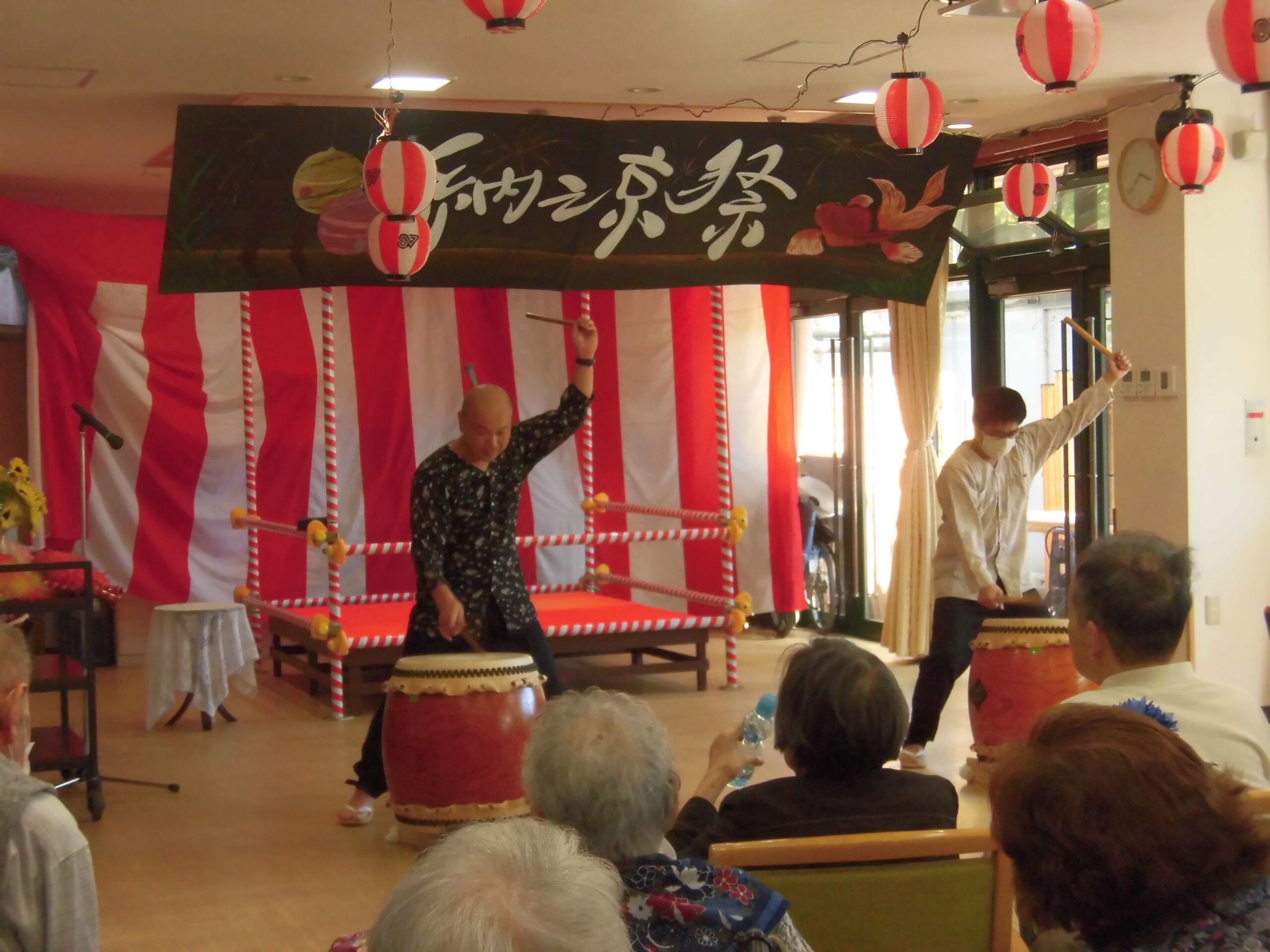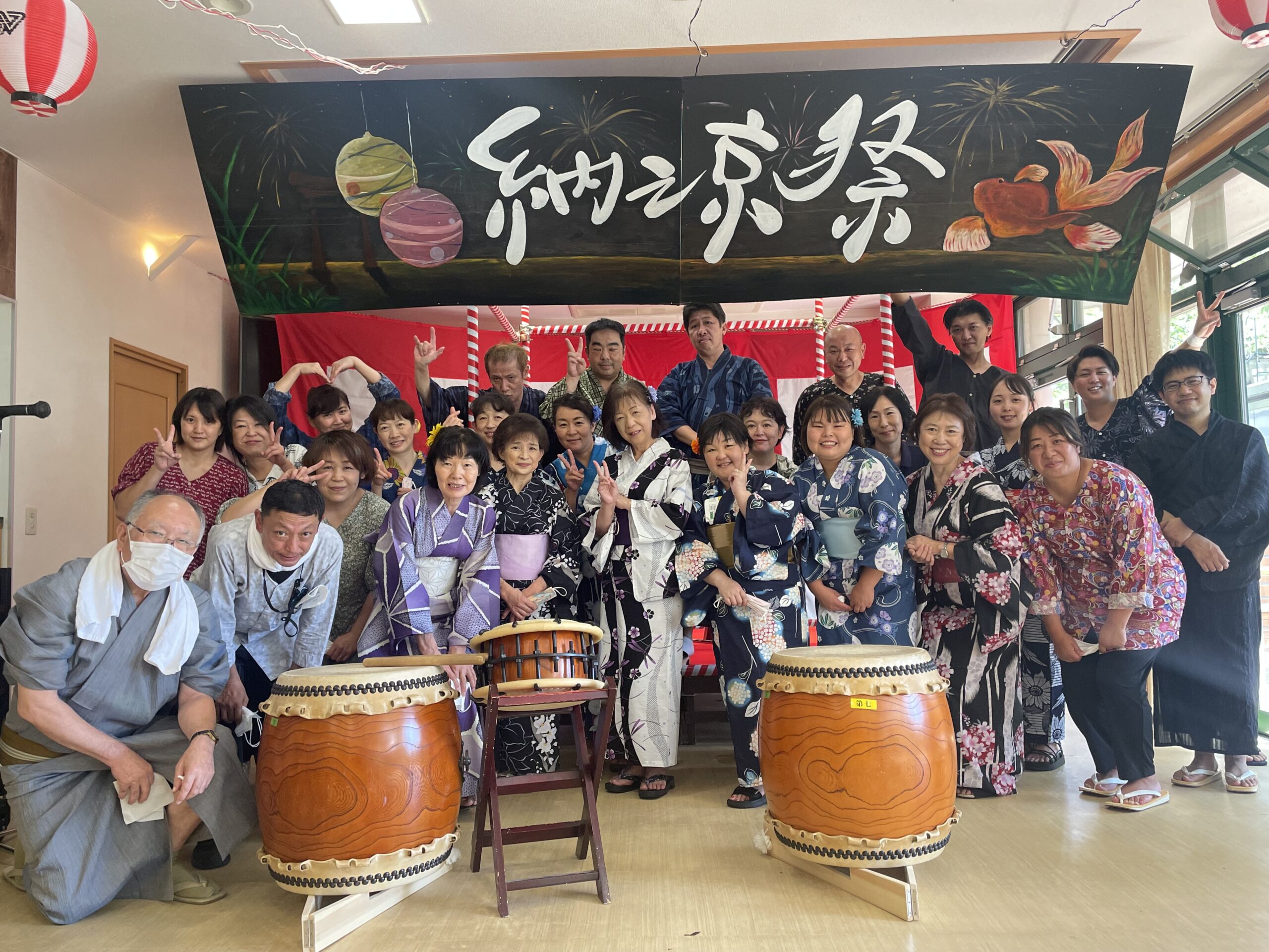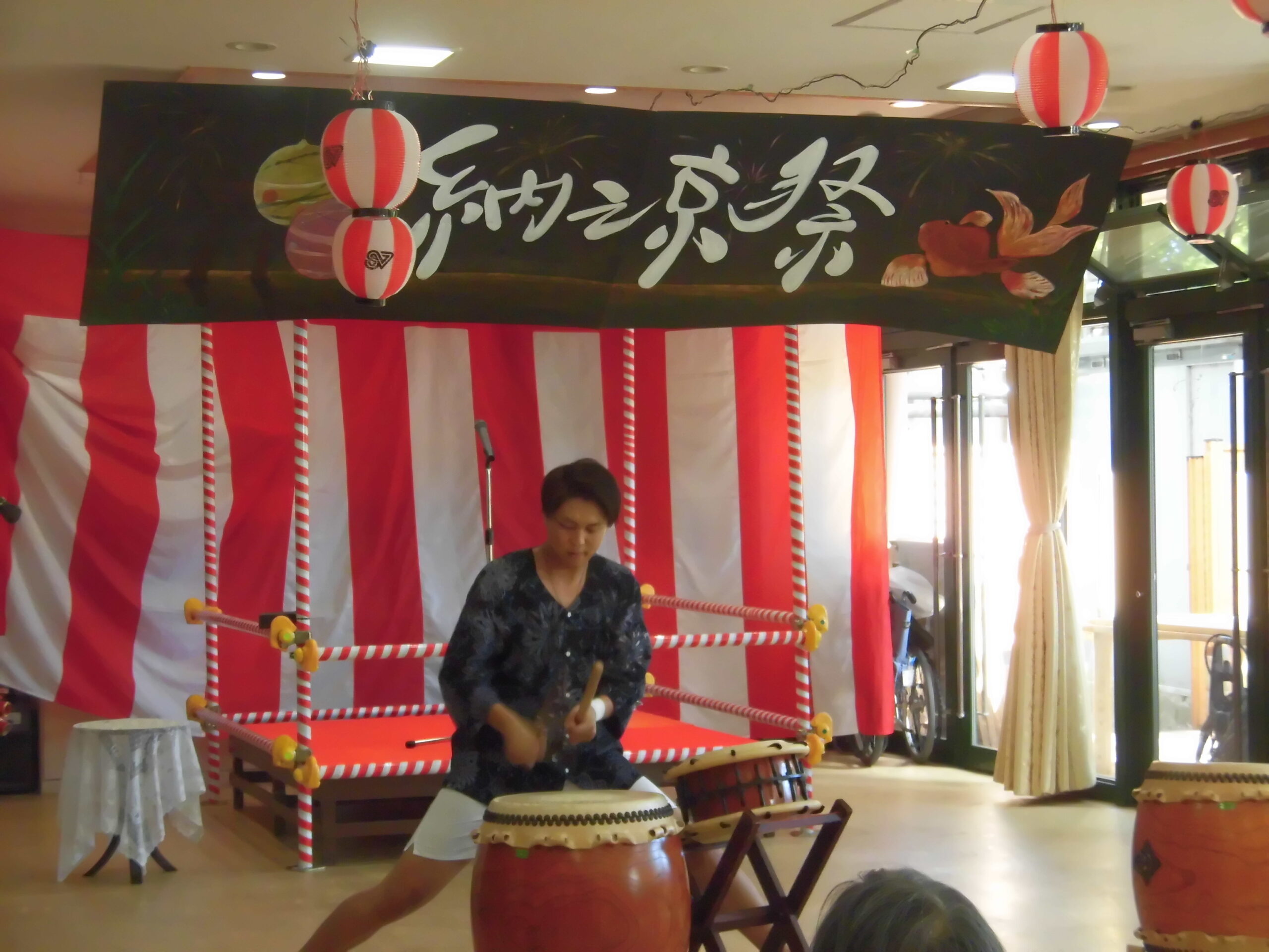 午後には職員の出し物で、「マツケンサンバ」「盆踊り」「和太鼓」を披露させて頂き、