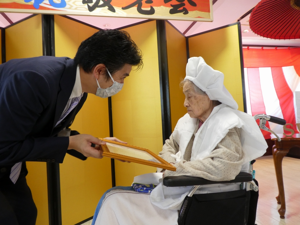 今年は、21名の方を表彰させて頂き、最長寿の方は、百一賀