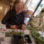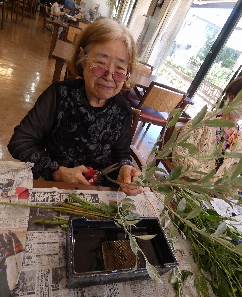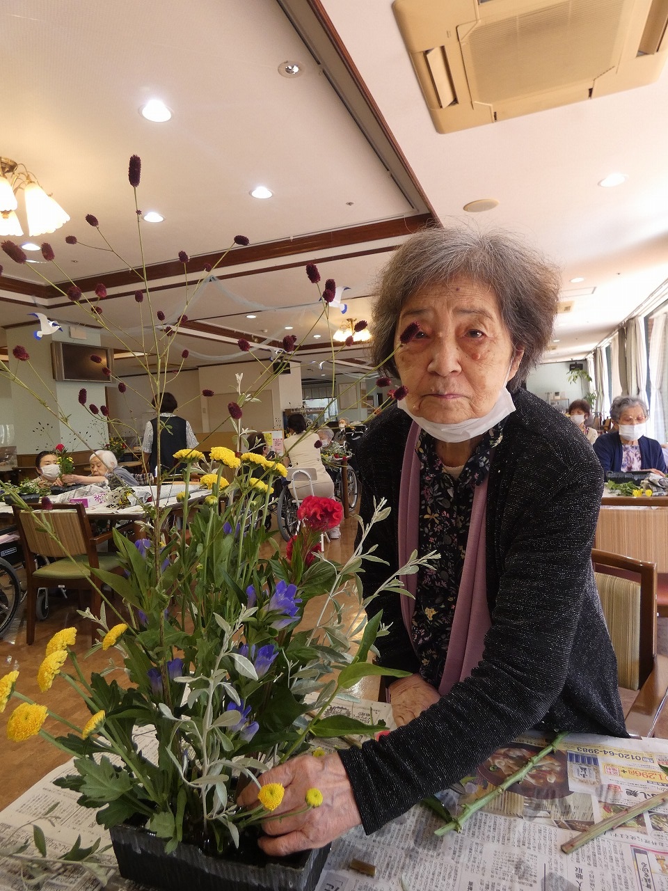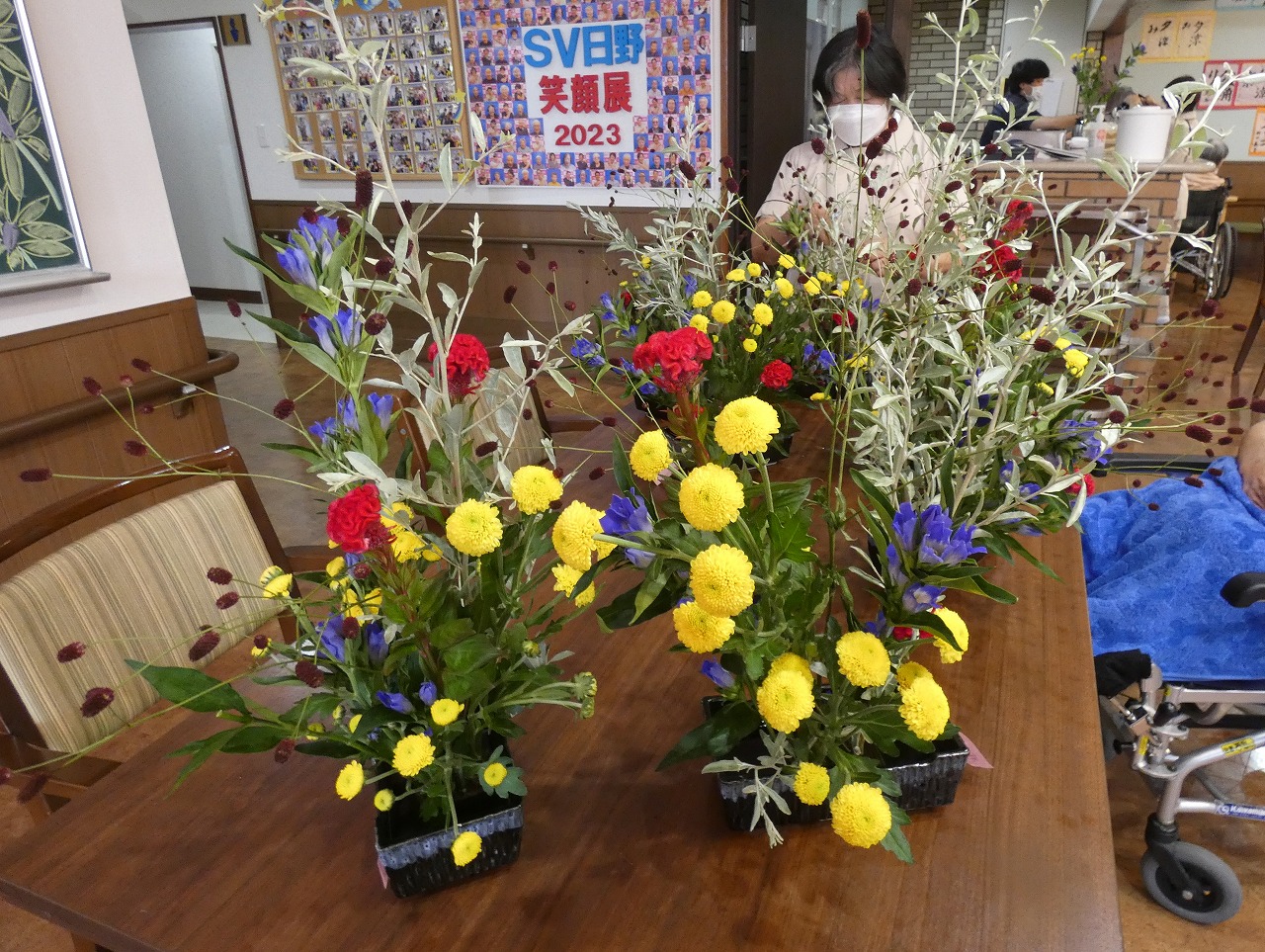 今月の活け花は、リンドウ、ケイトウ、ワレモコウ、