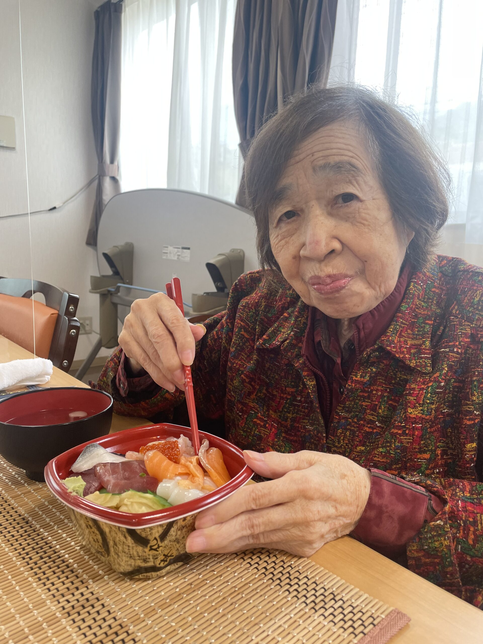 その後お食事をして帰園の予定でしたが、感染状況を踏まえ海鮮丼をテイクアウトして施設で召し上がって頂きました♡♡
