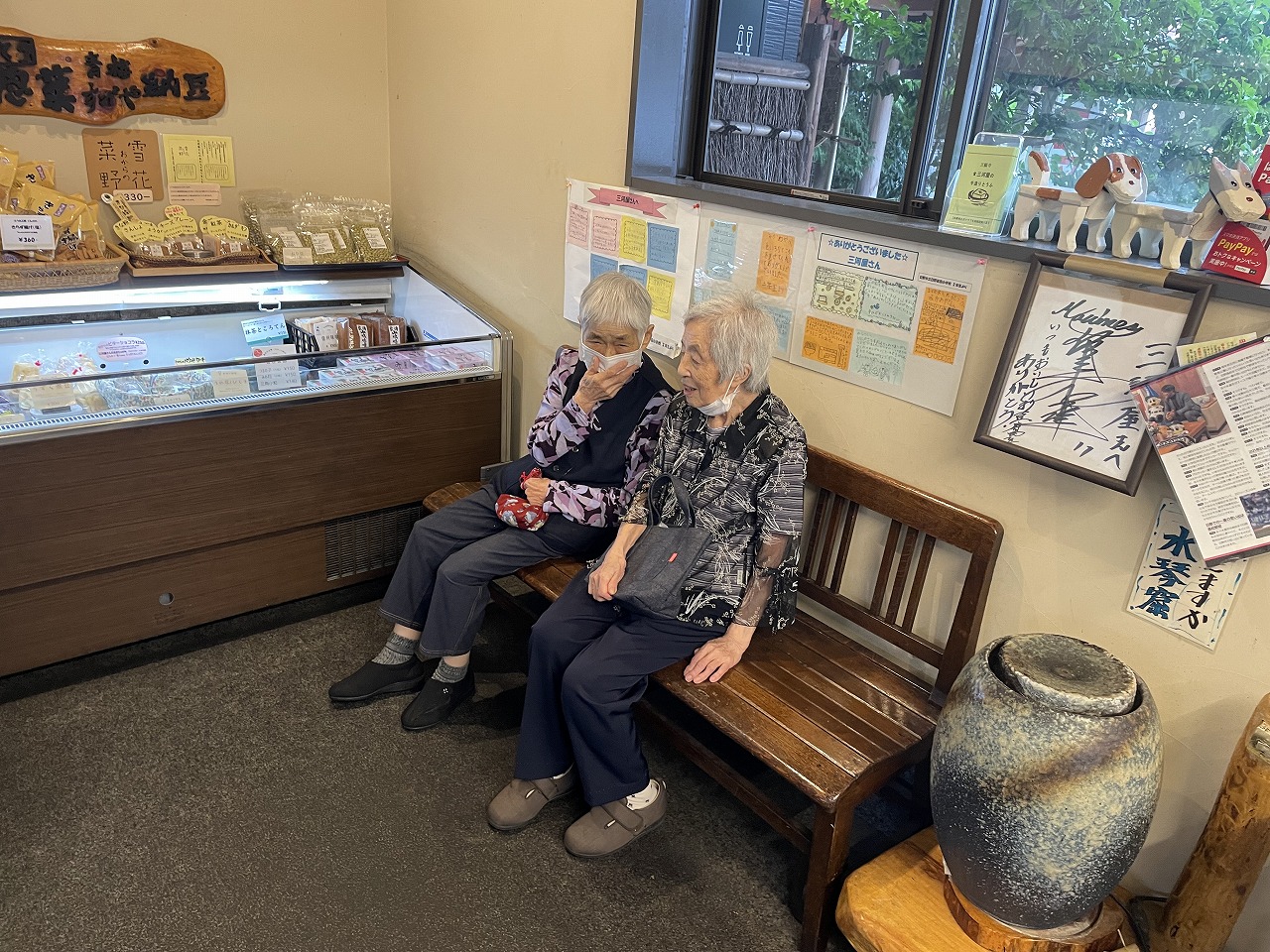 とうふ処三河屋さんでは、豆乳ソフトクリームを東屋で召し上がって