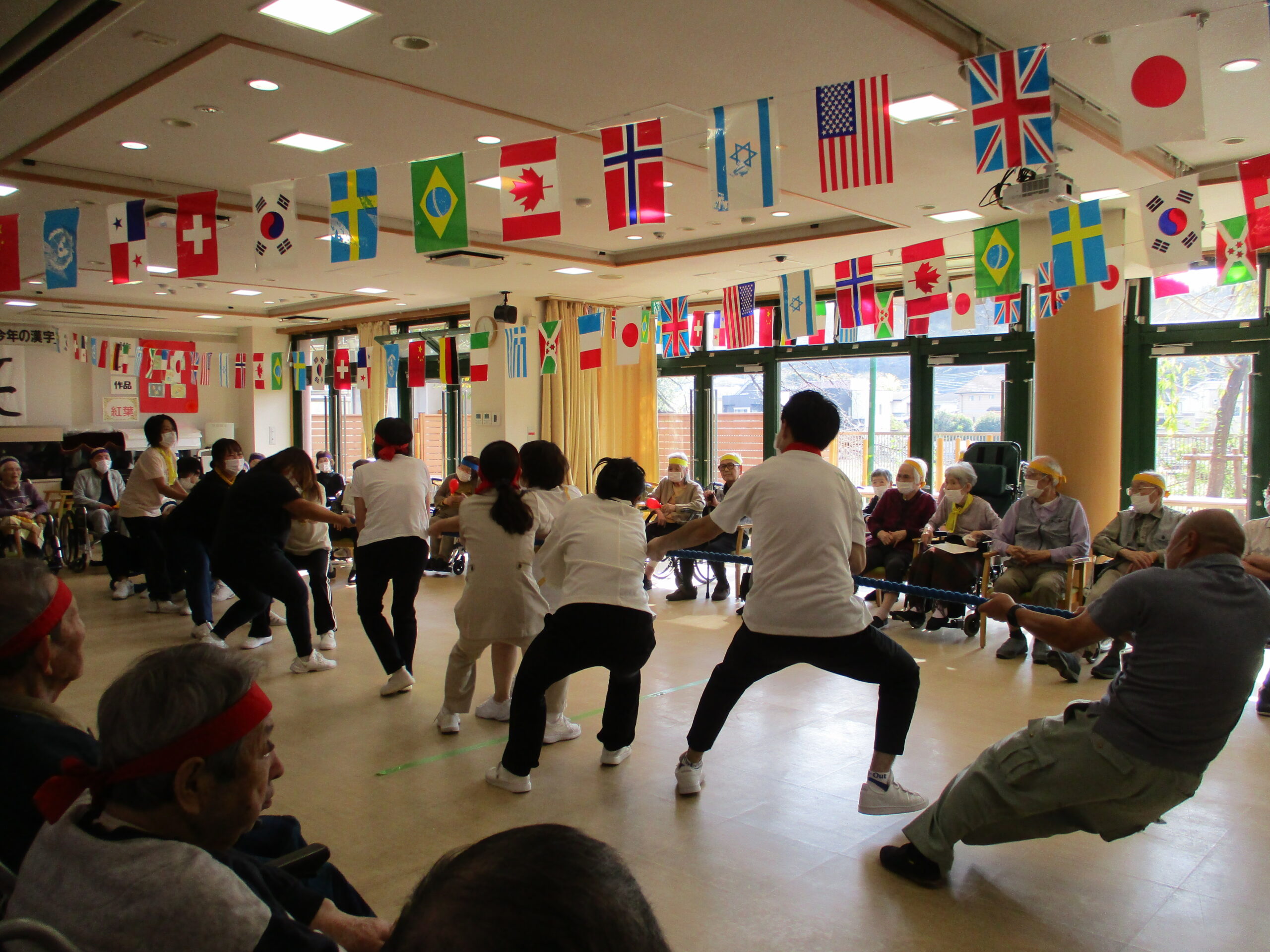 綱引きの時には、ご入居者皆様より職員への応援が白熱しておりました。