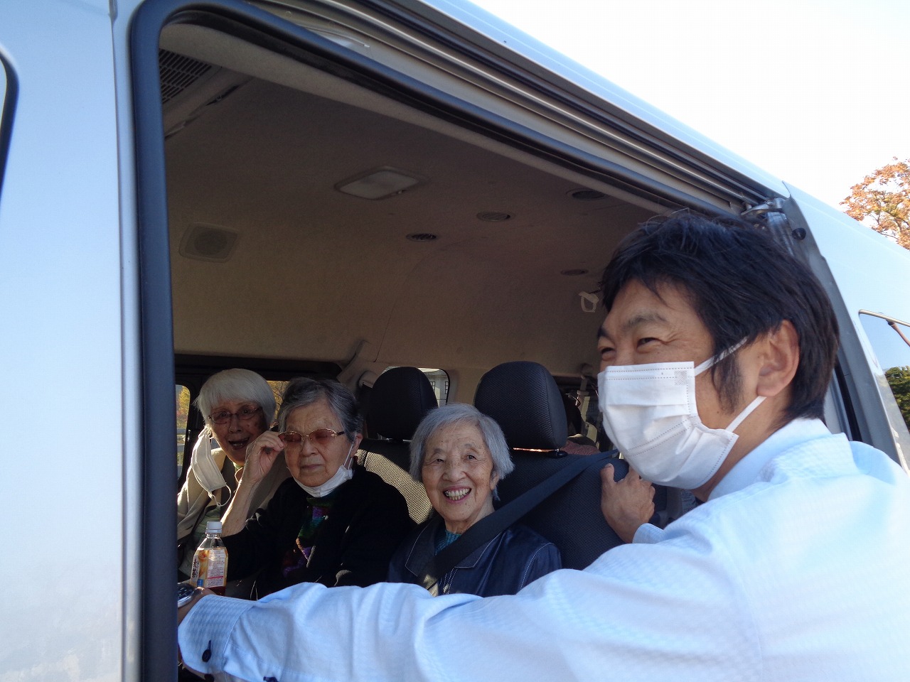 本日は紅葉ドライブを行い、甲州街道・八王子多摩御陵の紅葉を観賞しにお出かけしました。道中の車内では出身地やお仕事の話、八王子での思い出話など会話が途切れることなく盛り上がりました。紅葉は、イチョウが見事に色付いており、「わー、綺麗!いい時に来たわねぇ」「紅葉を見て元気がでた!」と大変喜んでくださいました!皆様、楽しんでいただけたようで、私も充実した時間になりました。