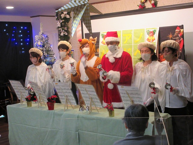 午後の部は、職員によるハンドベル、ピアノ演奏と