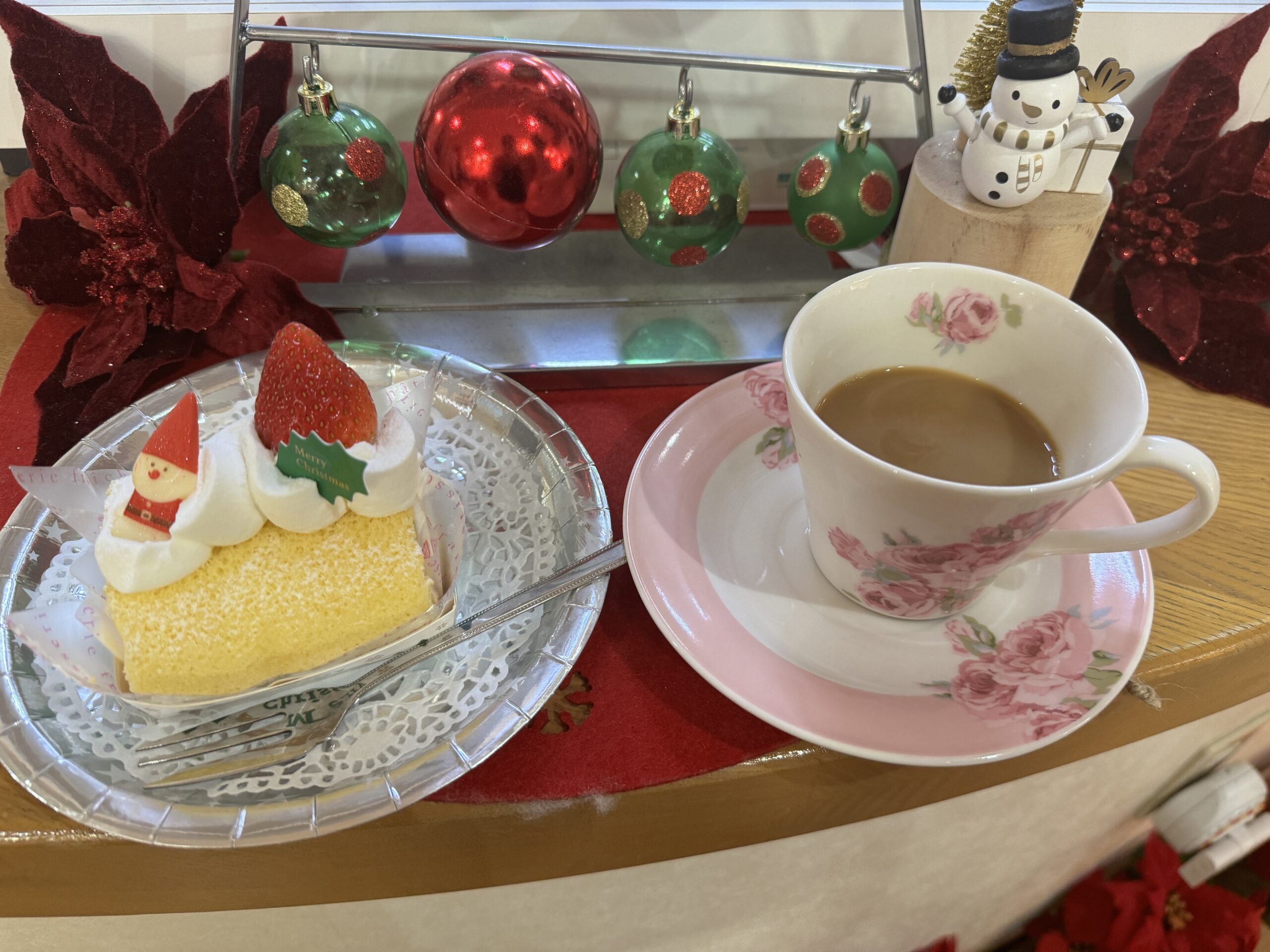 おやつに、サンタさんが乗ったクリスマスケーキを召し上がりました。
