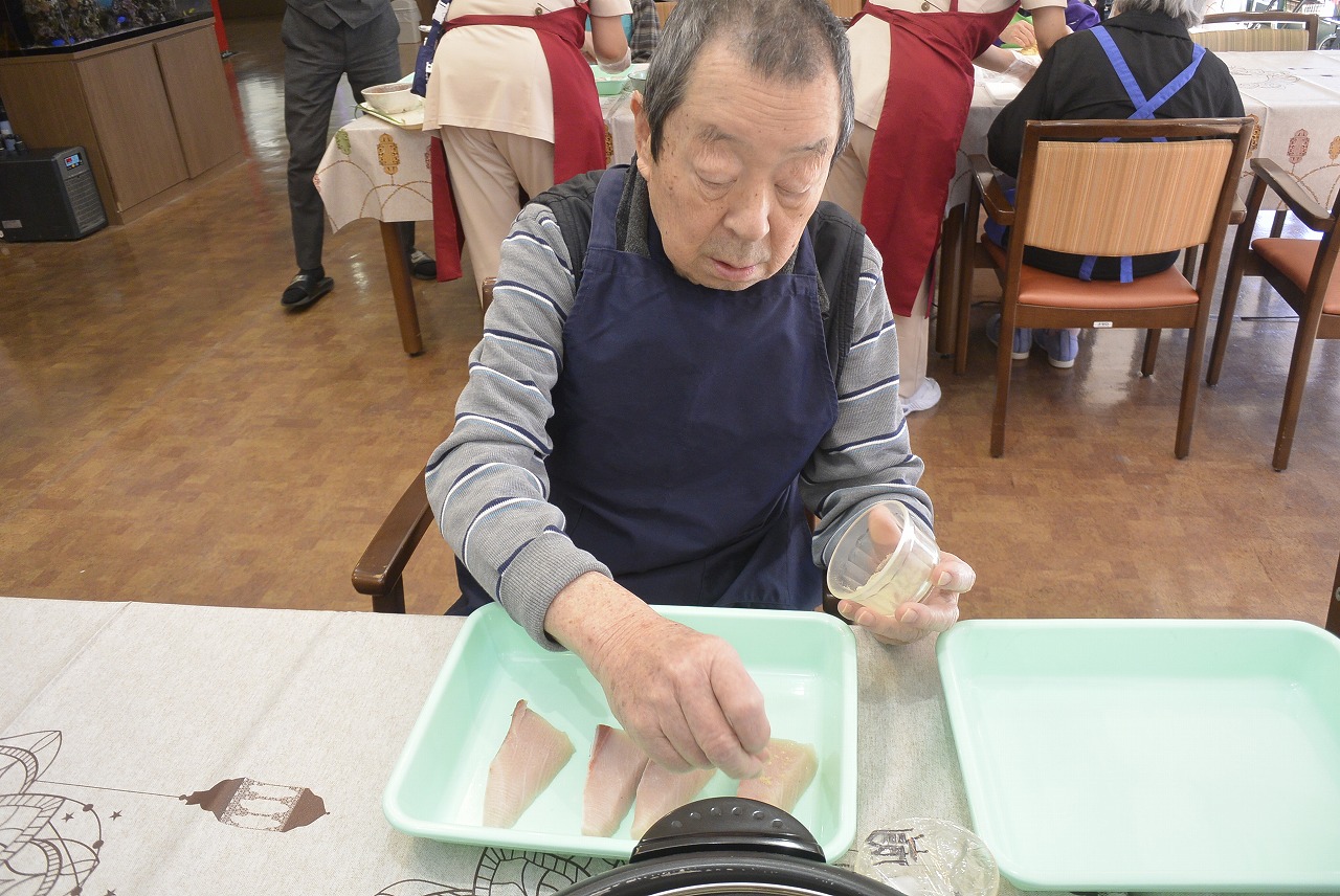ぶりの切り身を丁寧に扱い、慎重に塩コショウ(^_^;