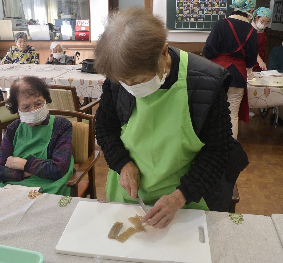 包丁を使っての作業は、やはり女性の方が活躍していました☆