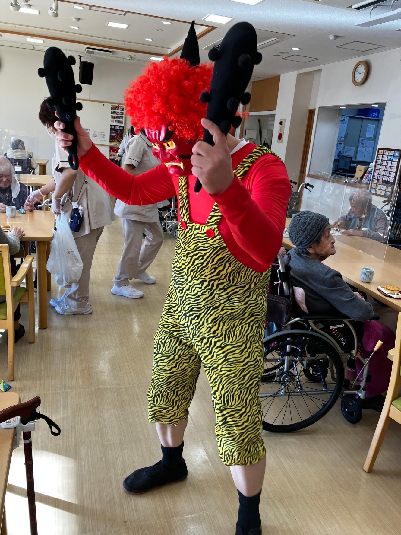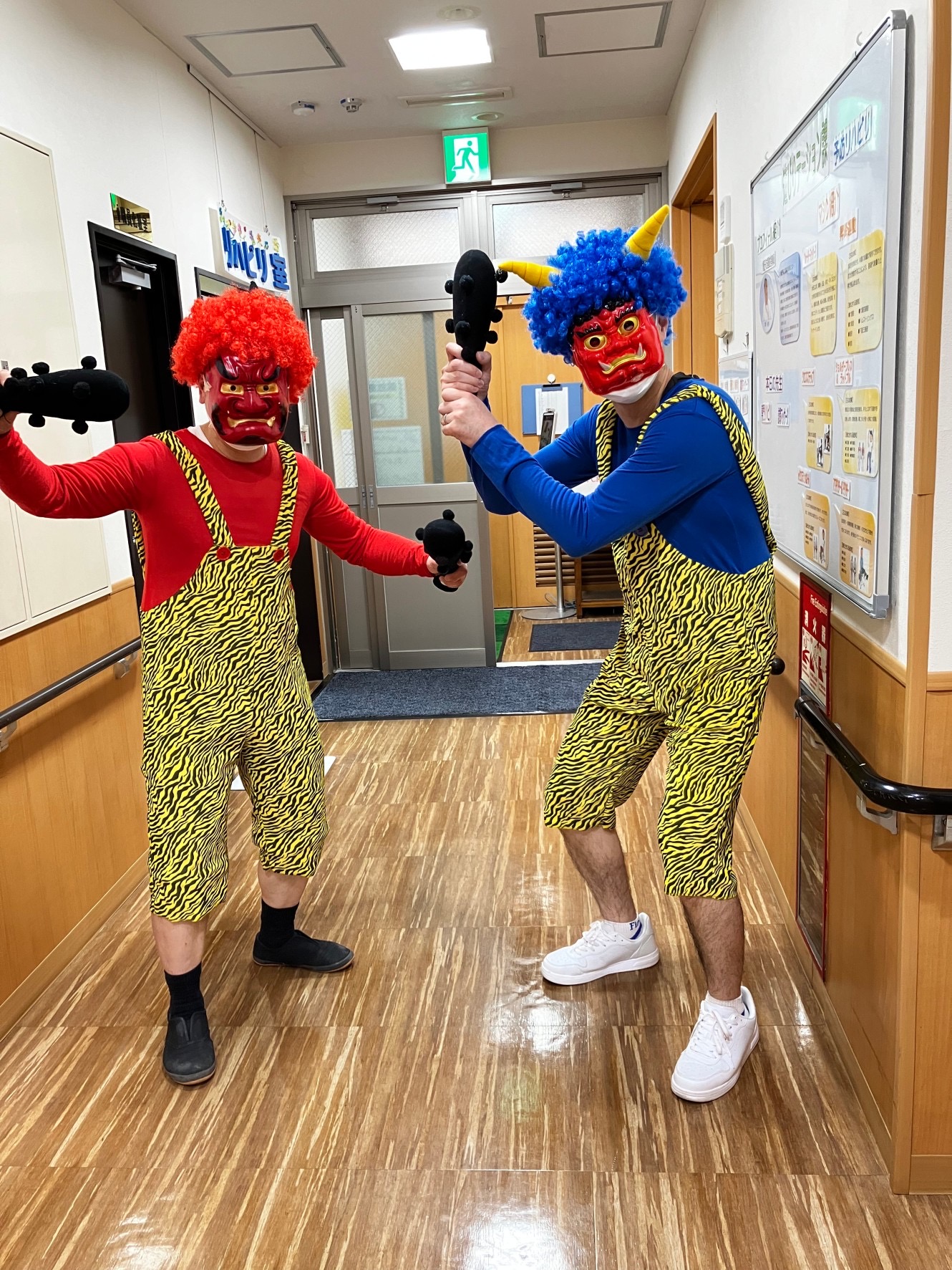 ご入居者の皆様も、職員も邪気を払うぞー!とはりきって豆まき、鬼退治です!