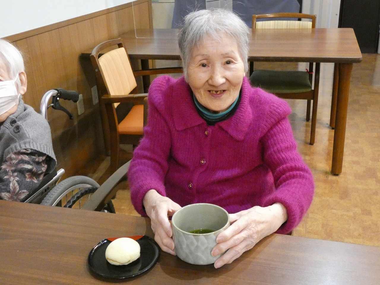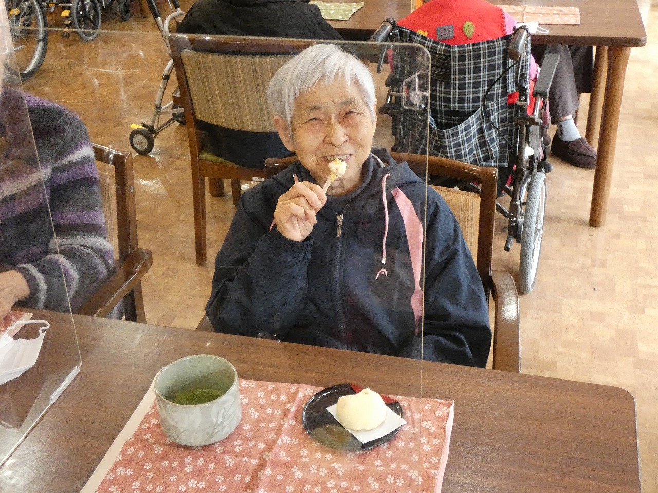 美味しいおやつを目の前に、笑顔がこぼれております♪