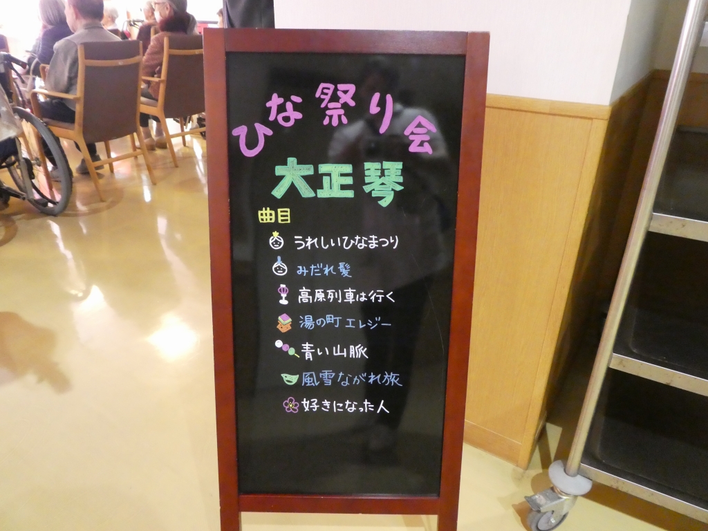 ひな祭り会、午後からは大正琴のボランティアの方々にお越しいただきました。