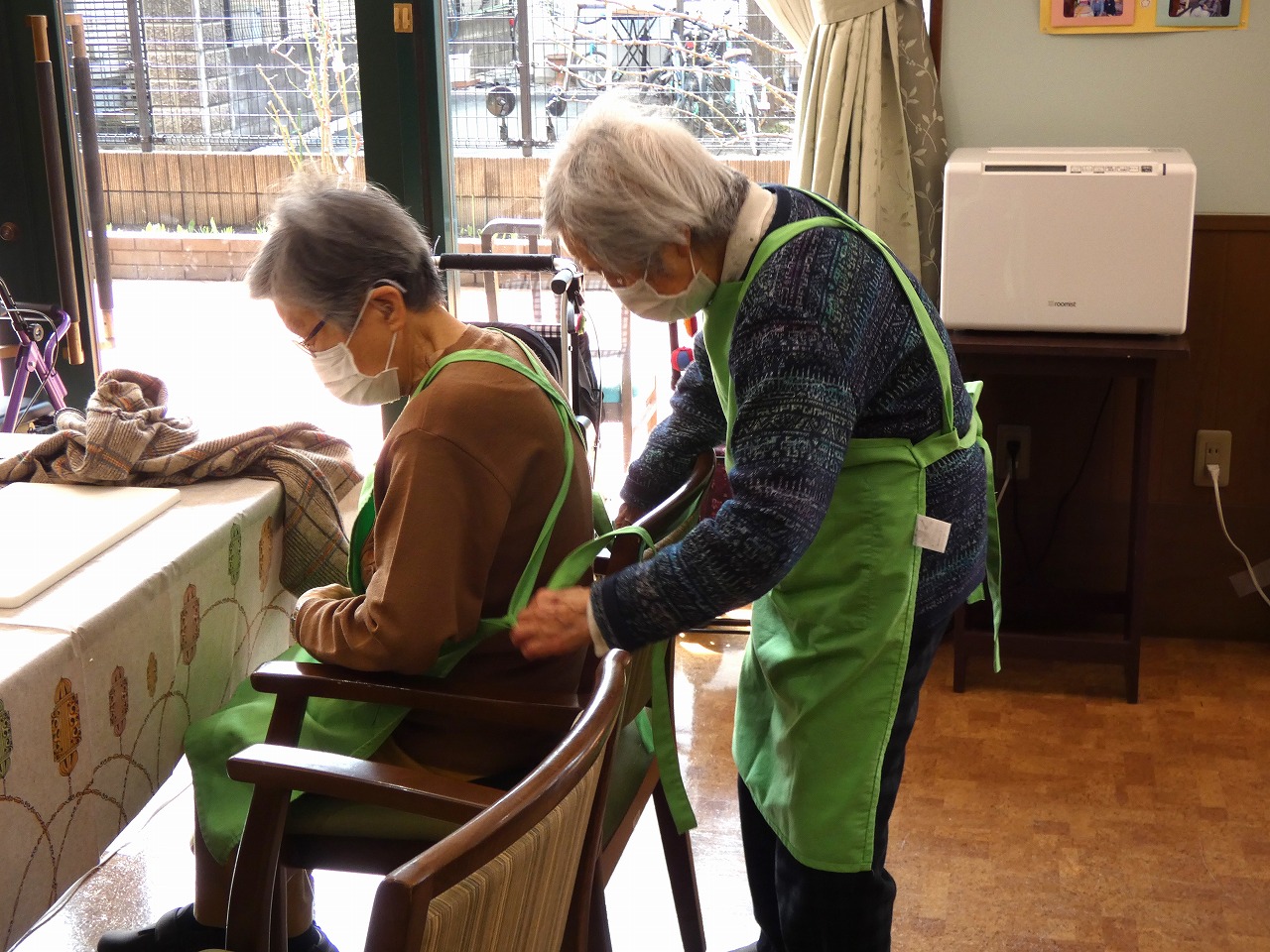 ご自身できゅっとエプロンの紐を結ぶ方(^_-)様々ですが!