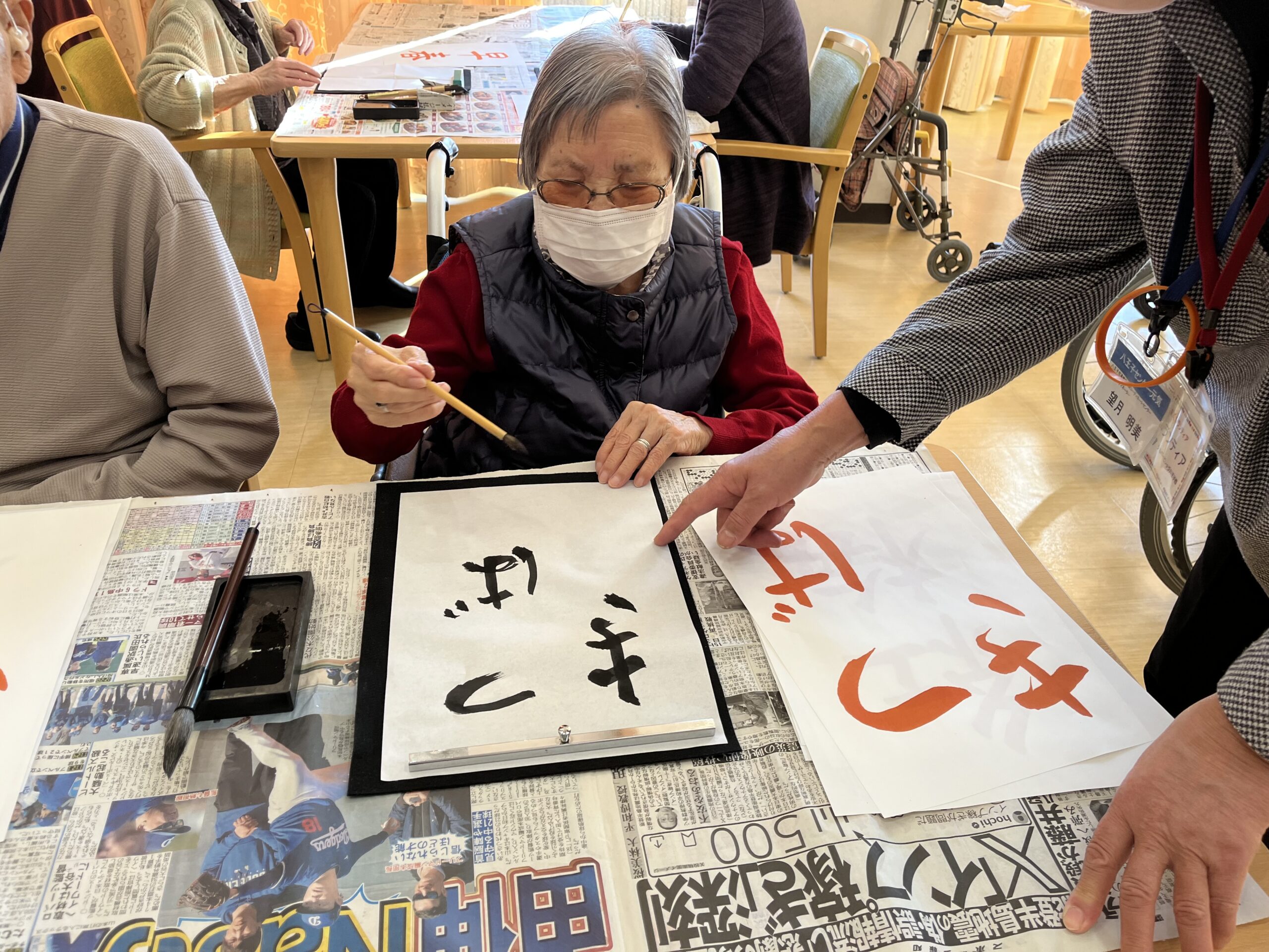 今年最初の書道教室は「つばき」「紅梅」「希望」「早春」を書いていただきました☆彡