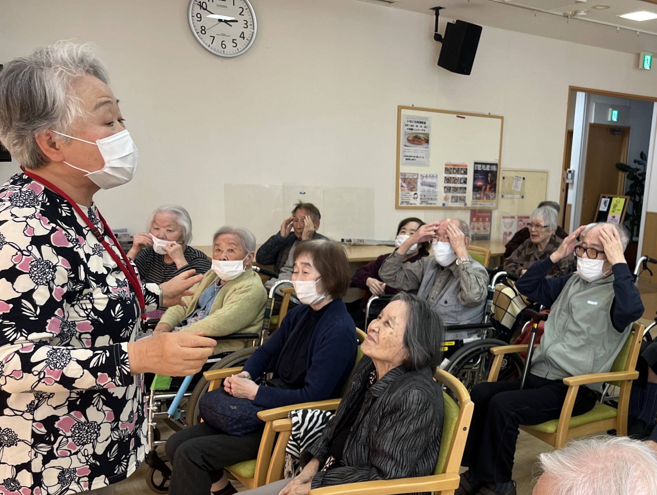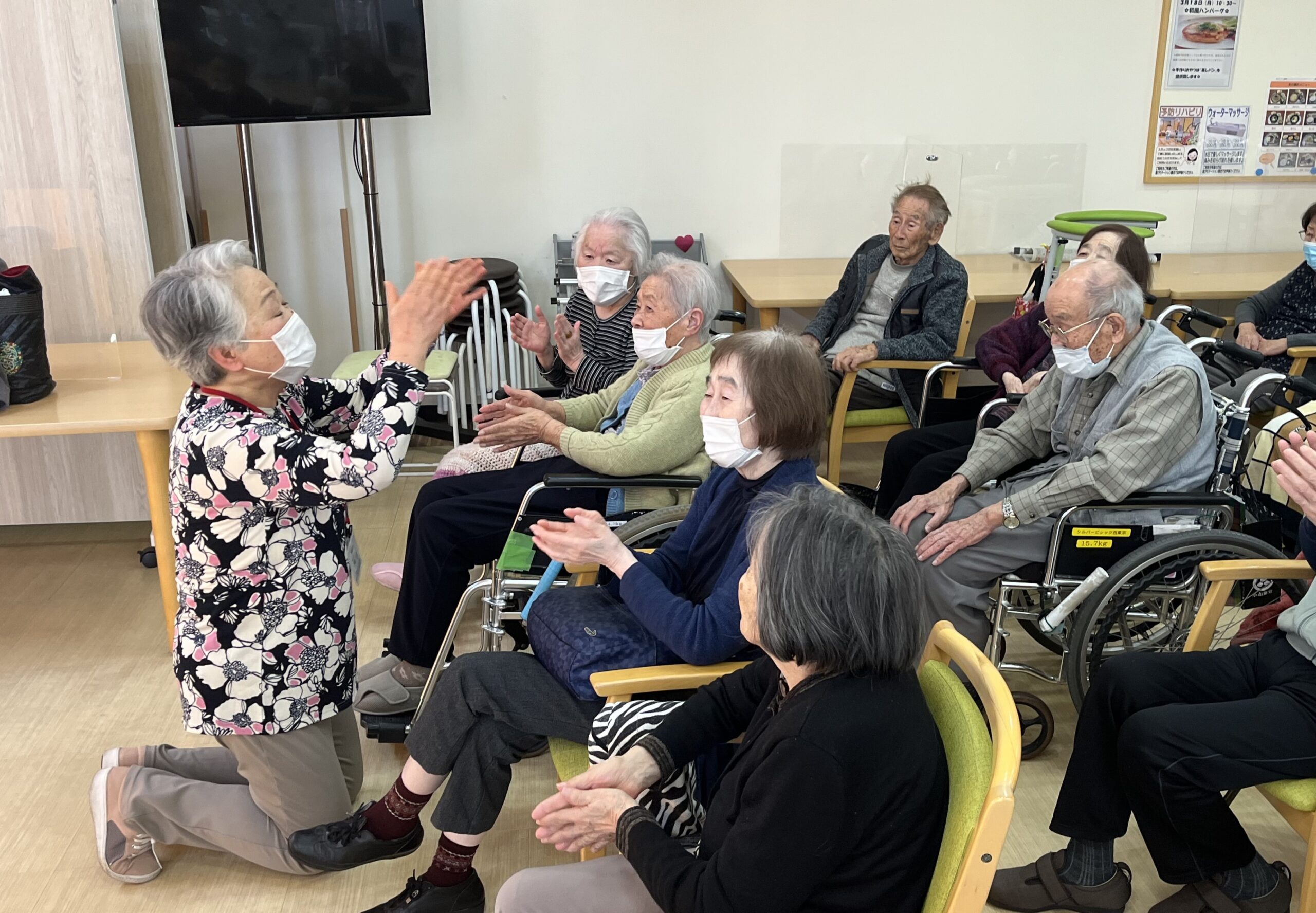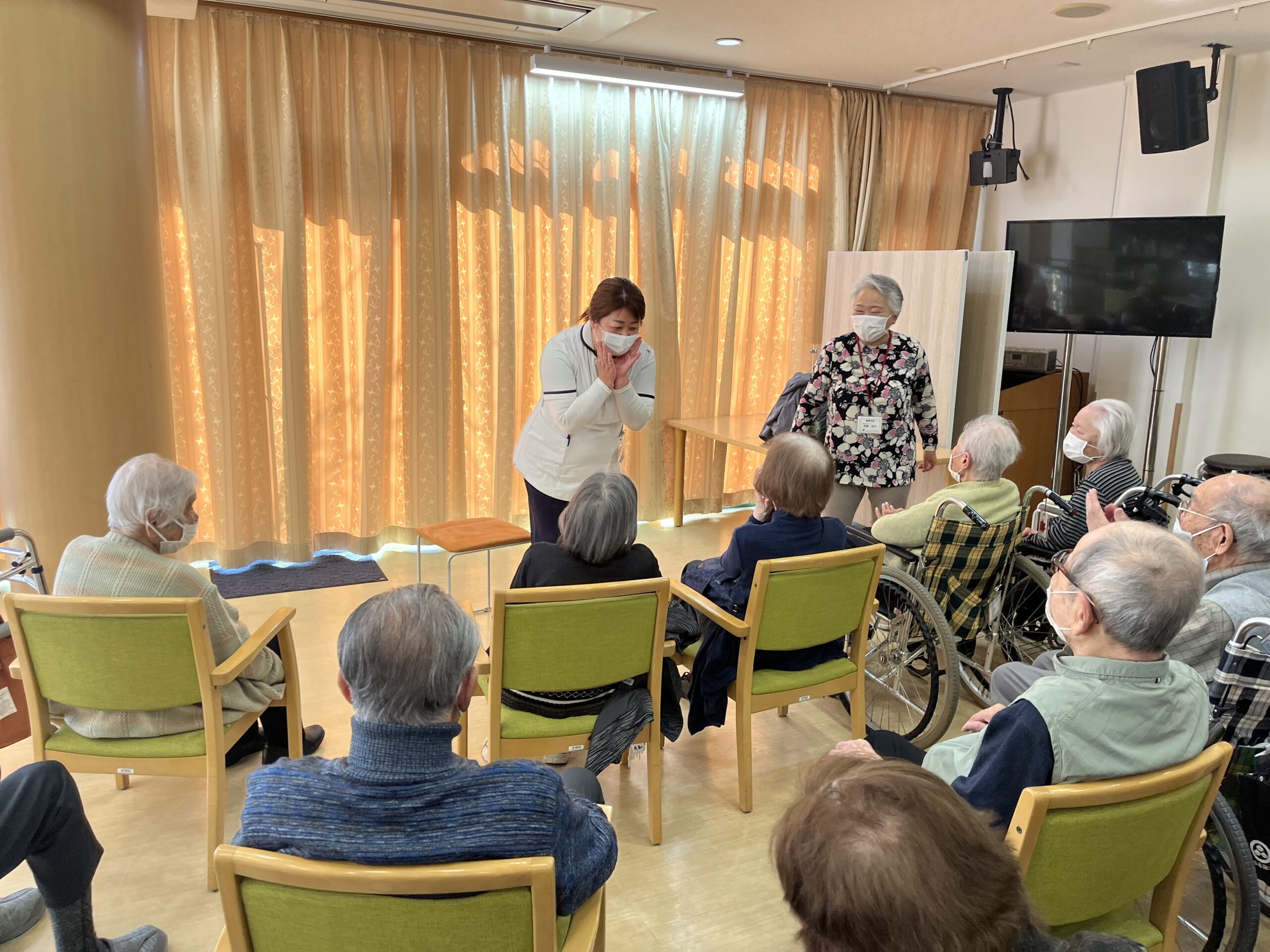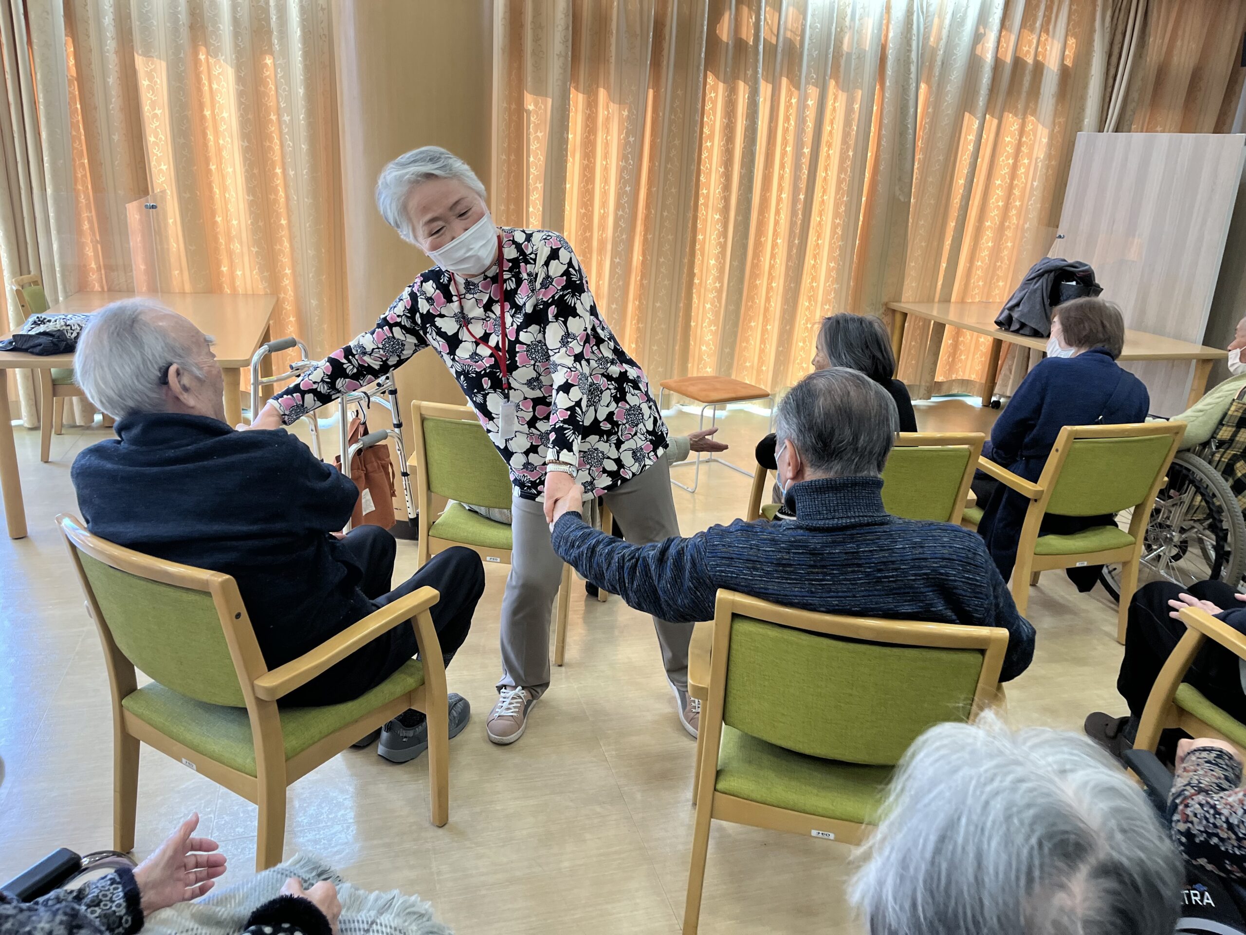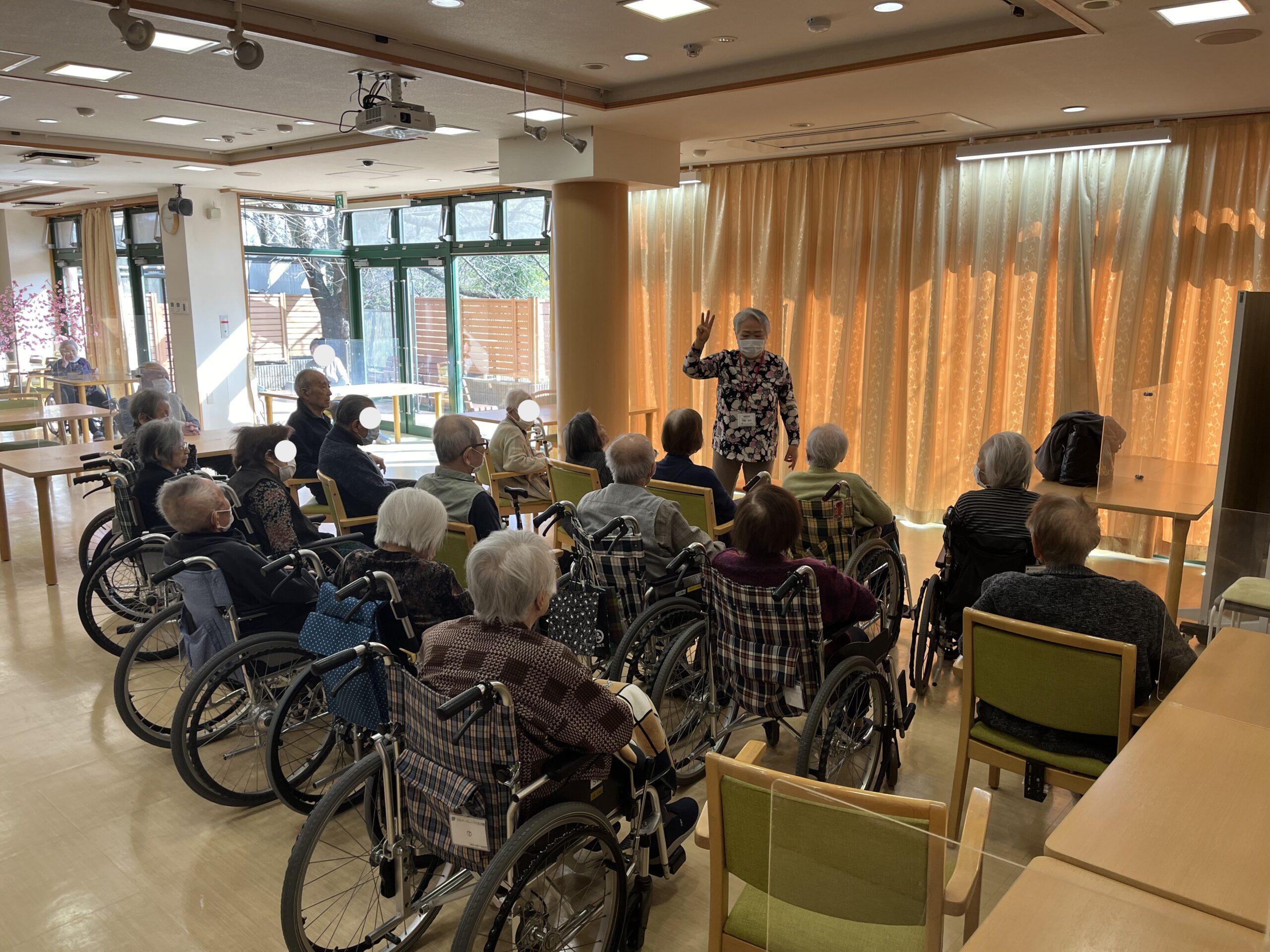 今回も沢山のご入居者と一緒に季節にちなんだ曲を歌ったり、体を動かしました♪