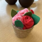 フェルトは真ん中に切り込みを入れ、くるくると巻きながらバラを作ります(^^♪とても簡単に可愛らしいバラが出来上がり、皆様驚かれておりました!