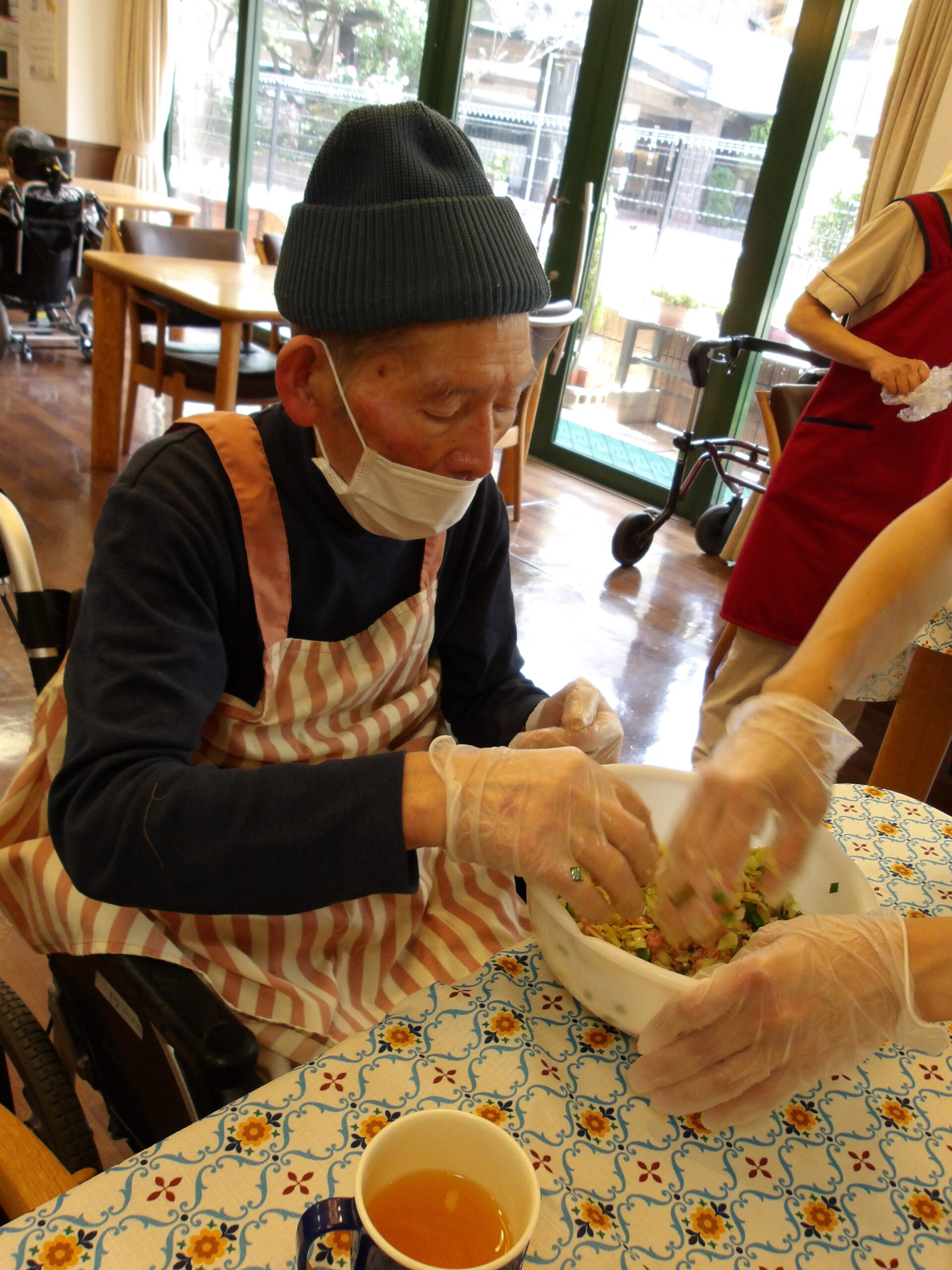 今回は野菜を切る人、タネを混ぜる人、包む人で役割分担を決め、