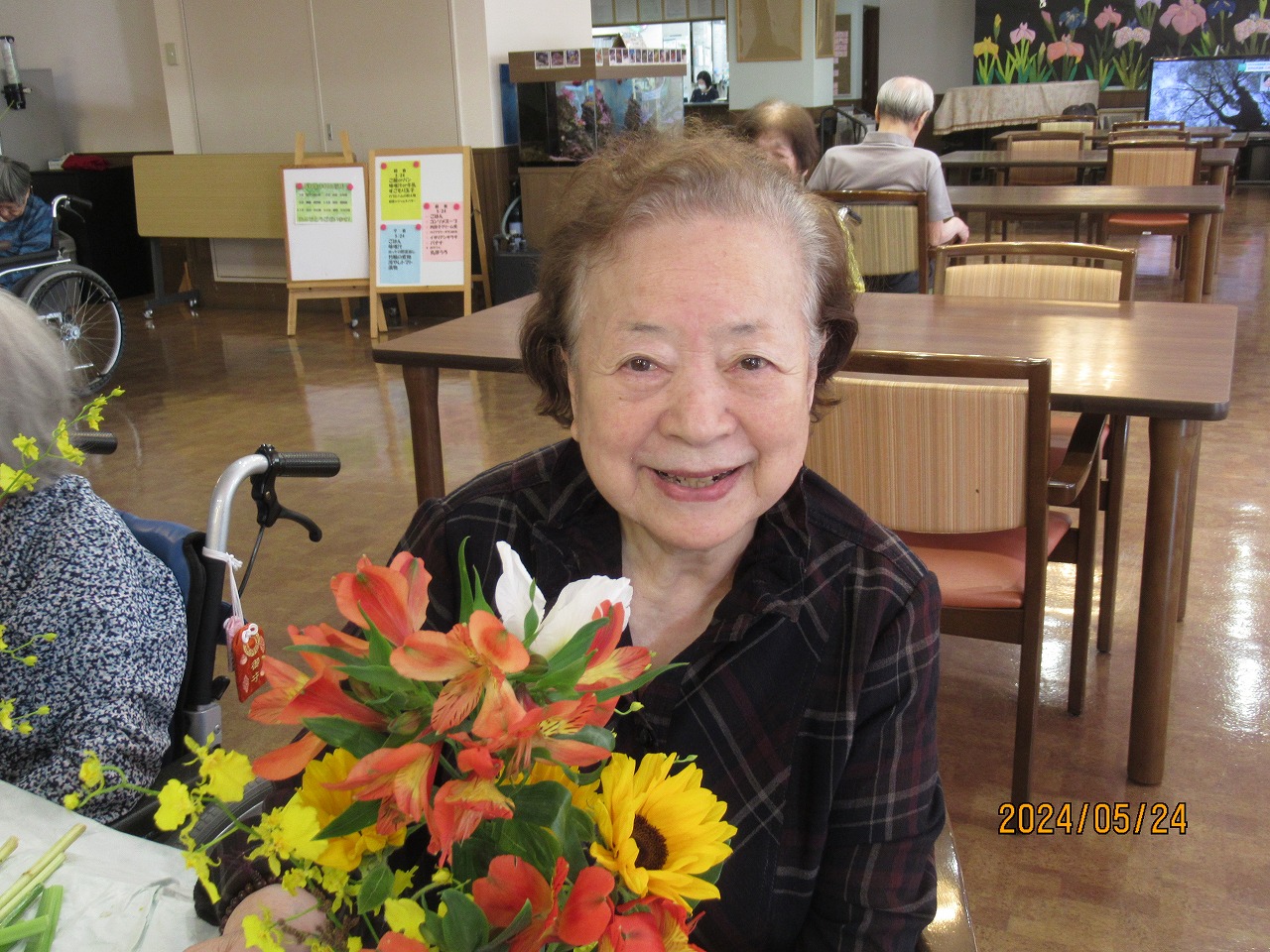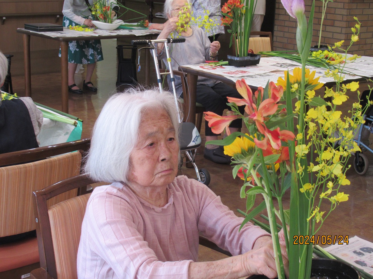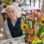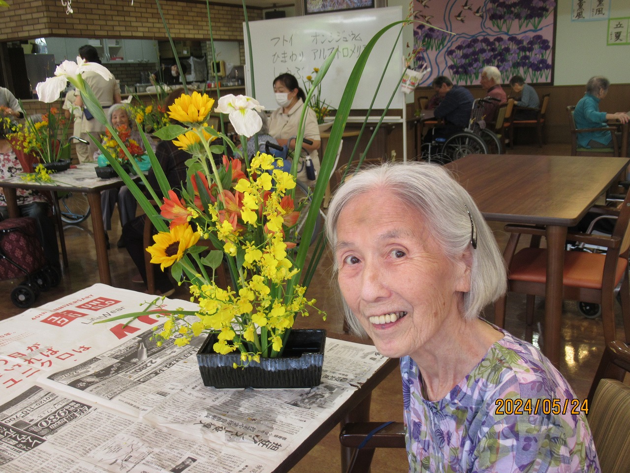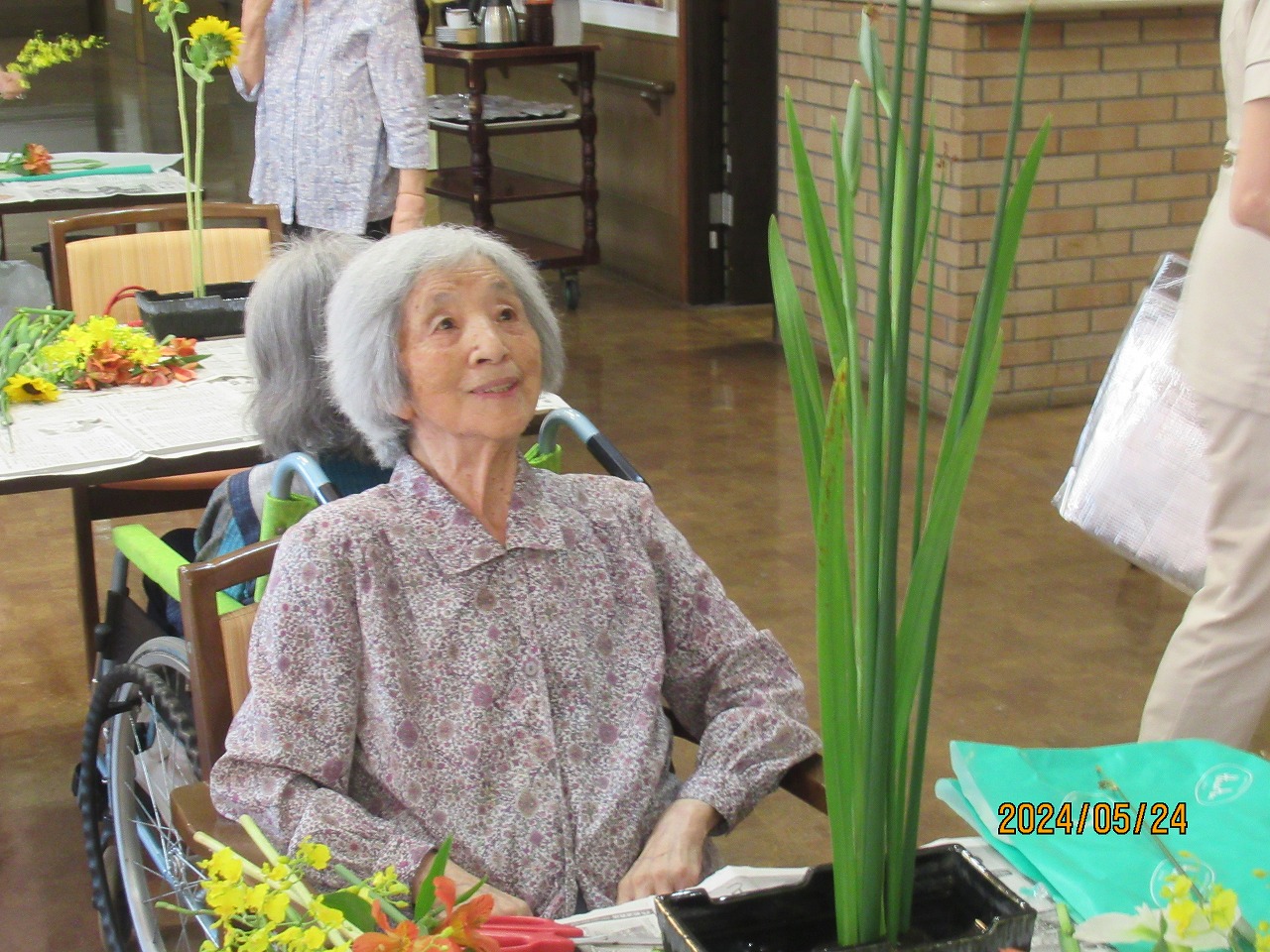 背の高い菖蒲を見上げ「どう活けようかしら⁈」の表情の方(*^-^*)