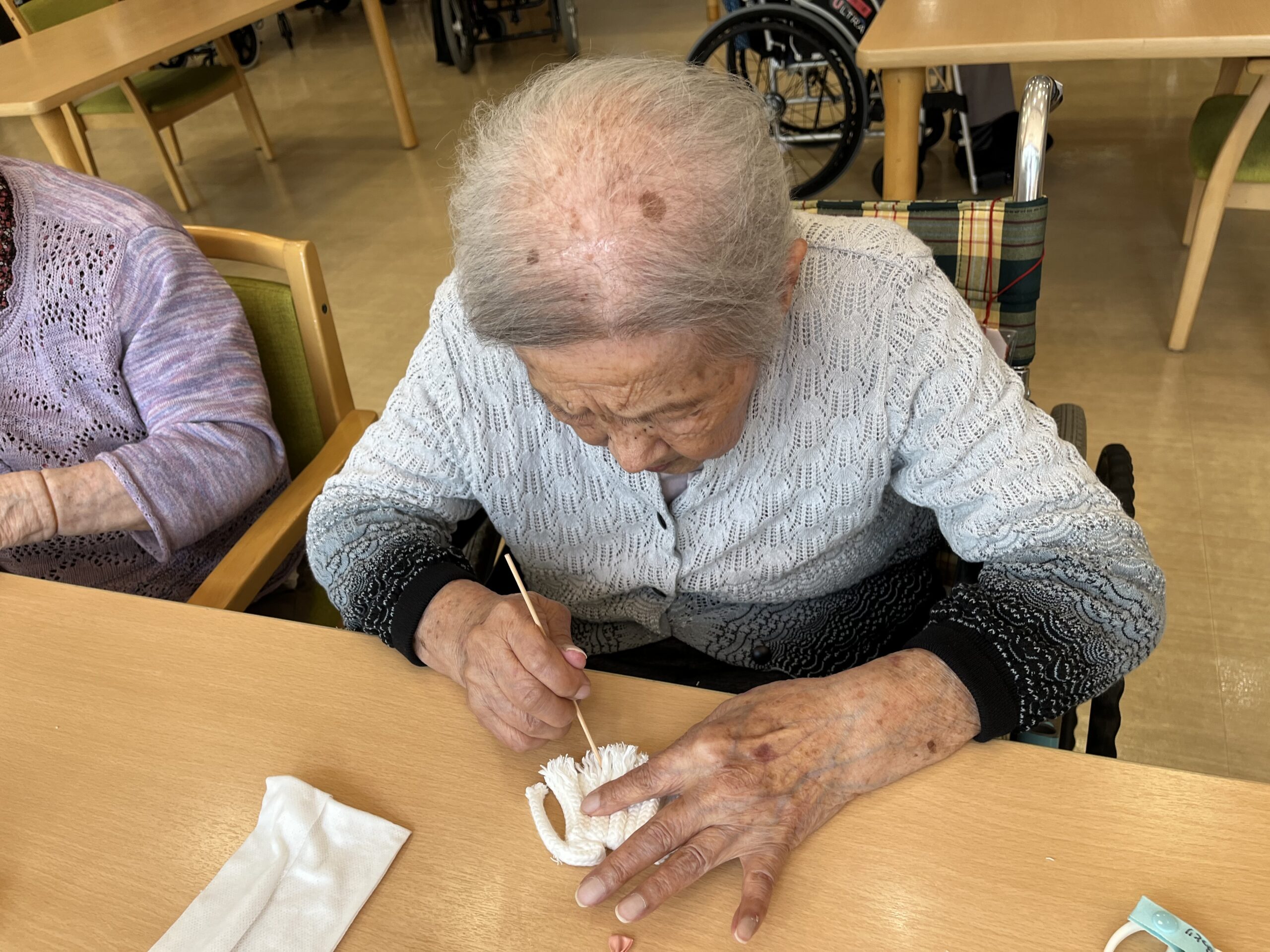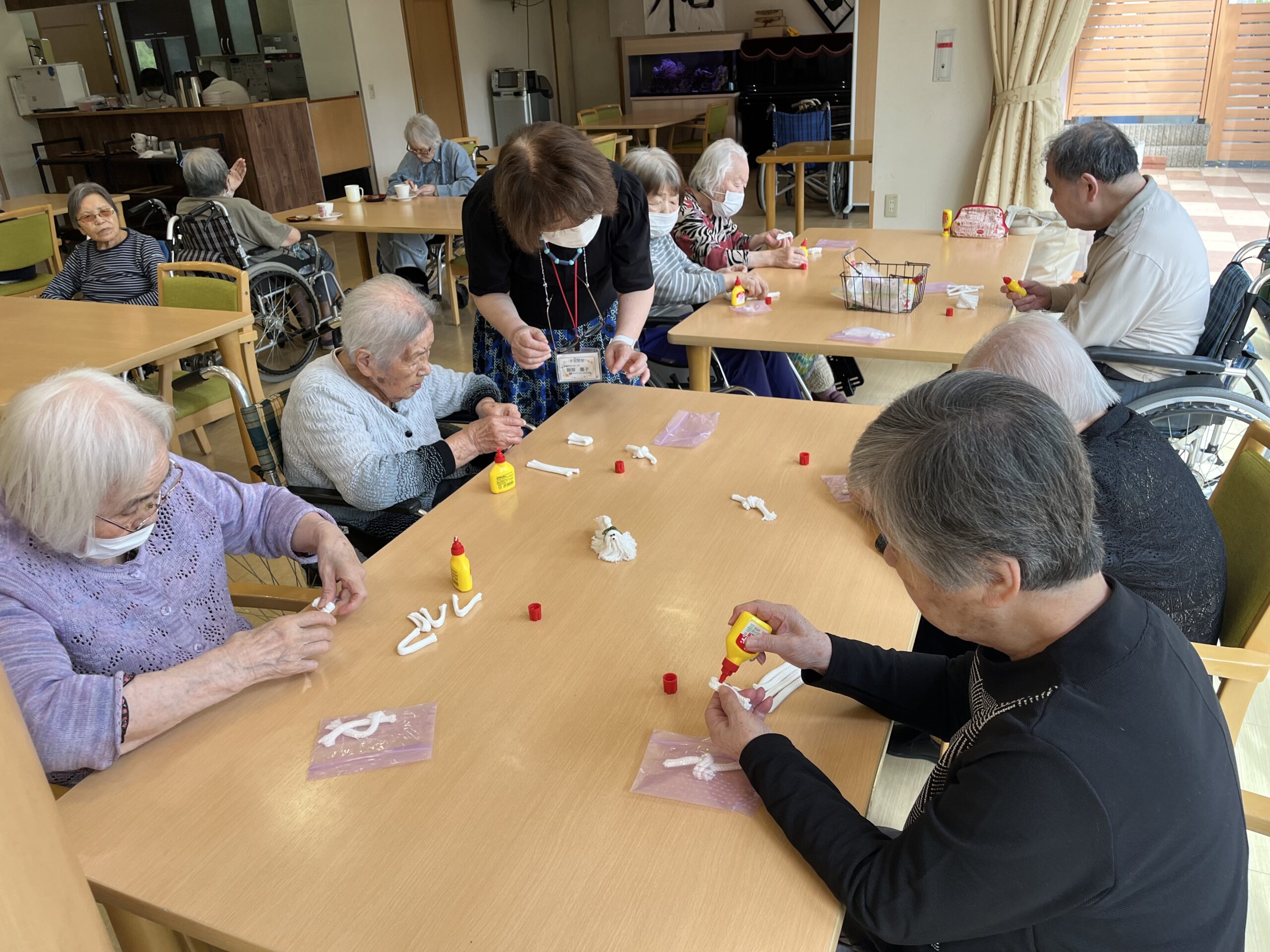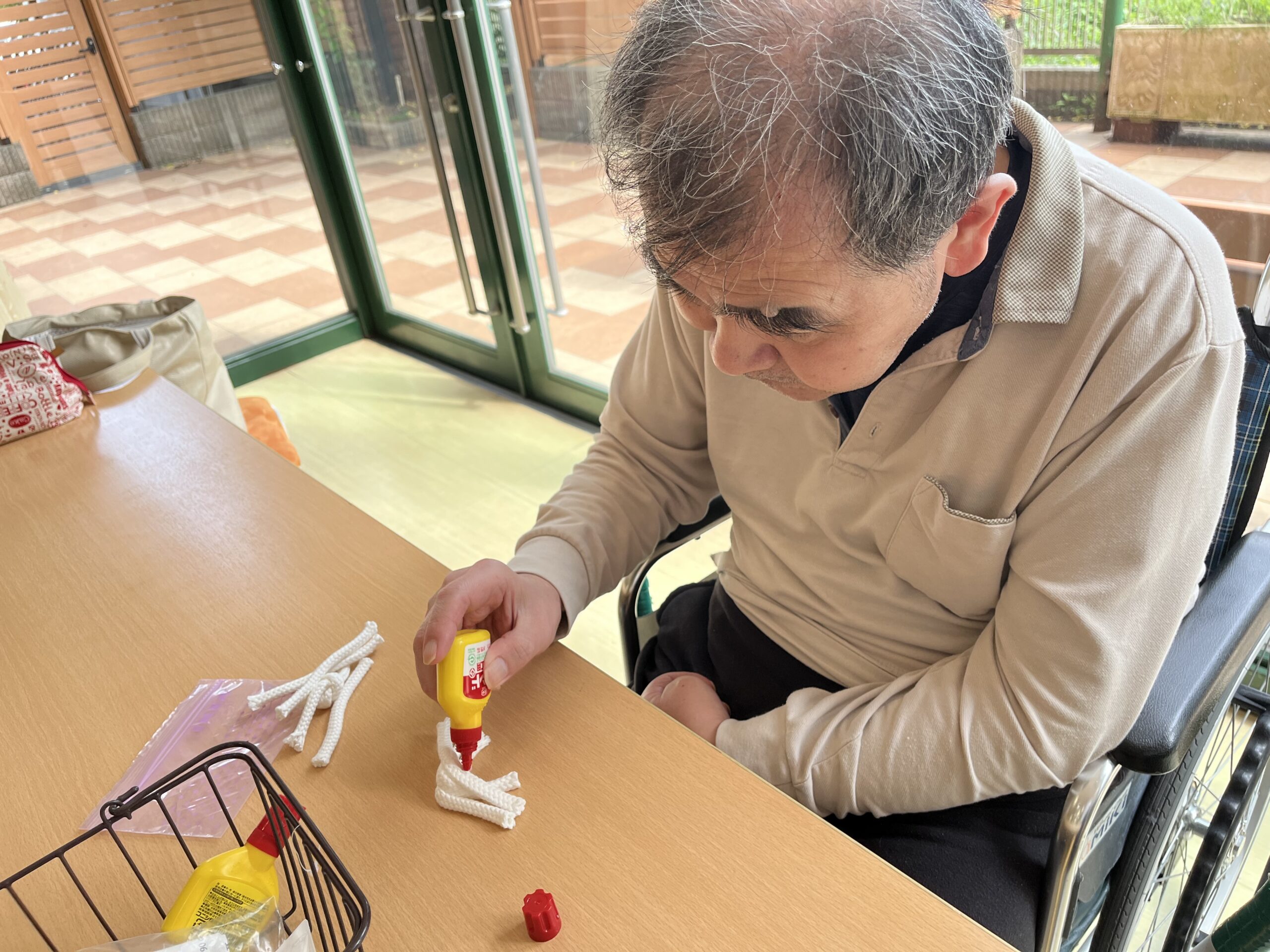 細いロープを使用しボンドを付けて犬の形に組んでいきます!
