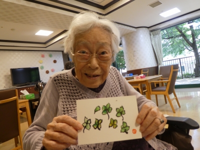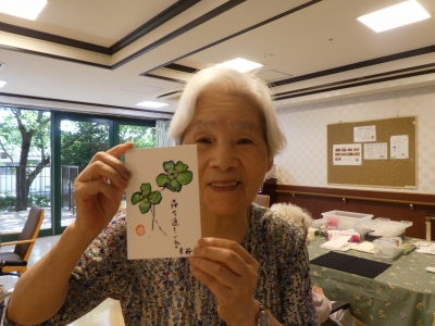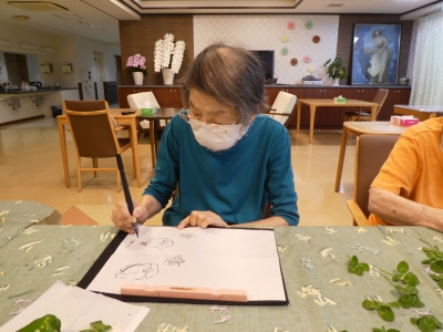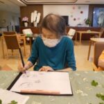 見本を見ながらペンで上手に縁取り、綺麗に色を付けています。