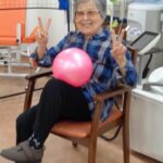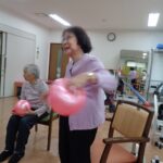 本日は日野リハビリ室にて運動クラブを開催しました。ボールを使用して、肩、肘など上肢の関節を大きく動かす運動や、足でボールを持ち上げ、筋力トレーニングを行うなど、休憩しつつ、しっかりと運動していただきました。