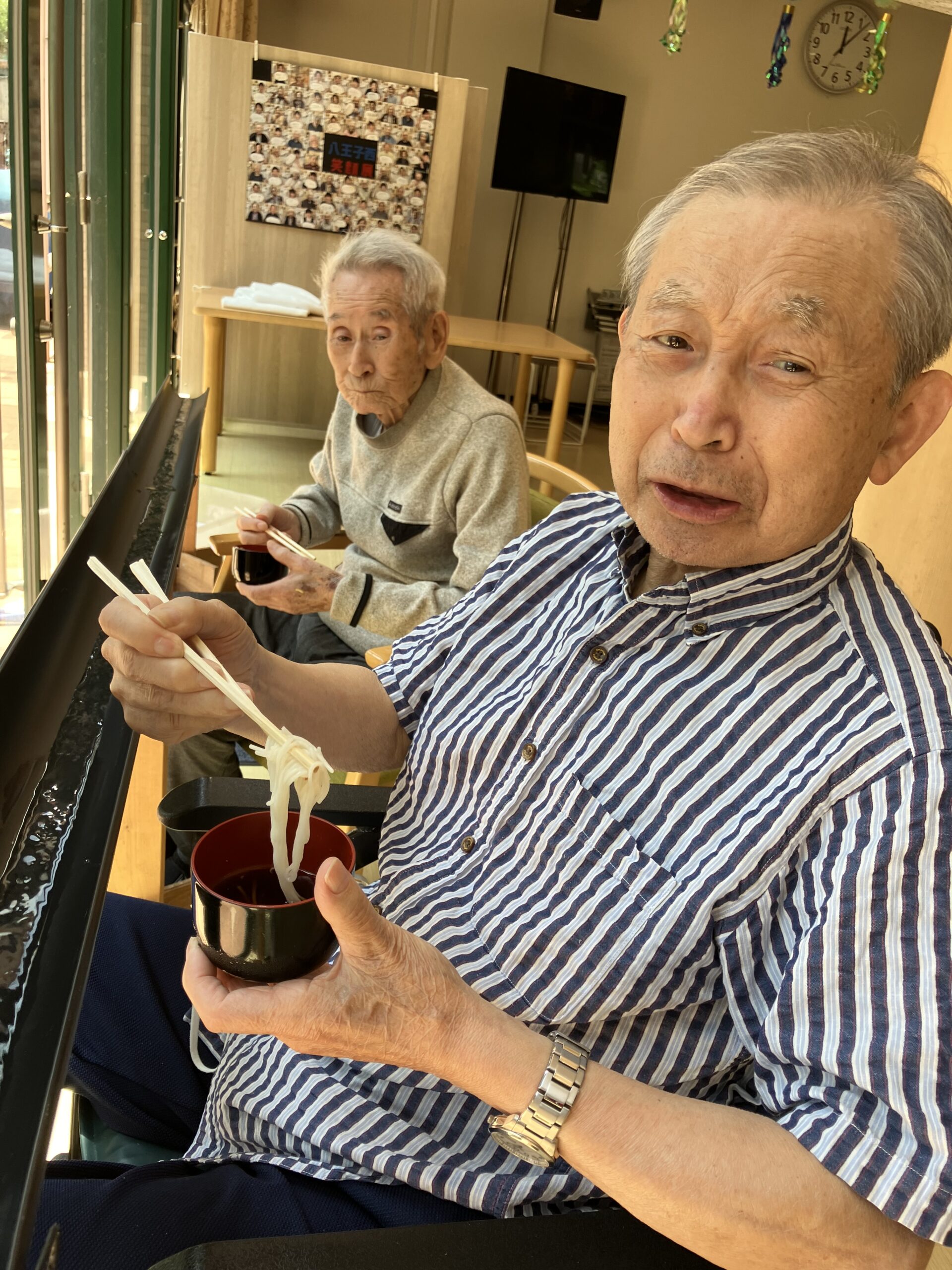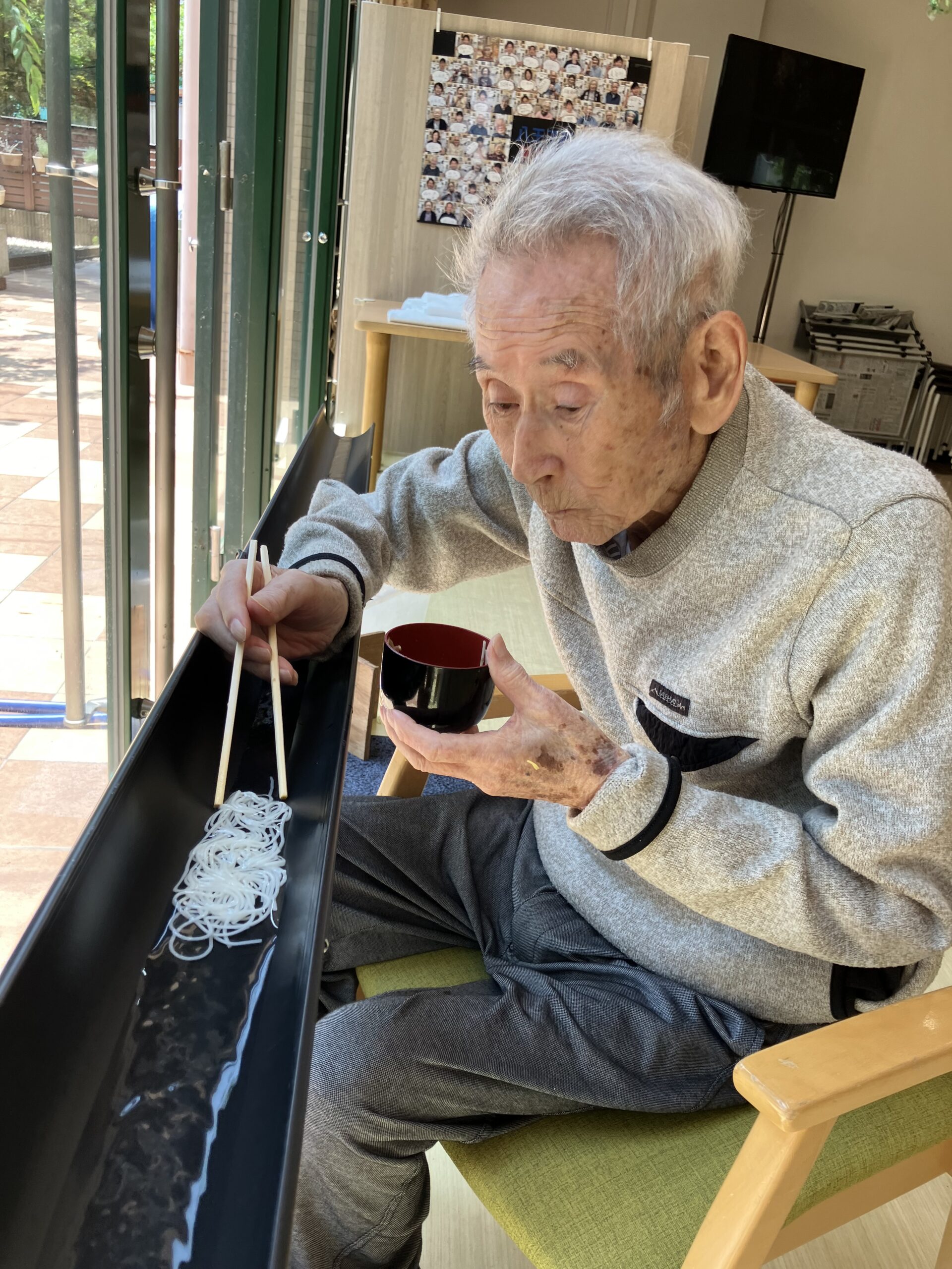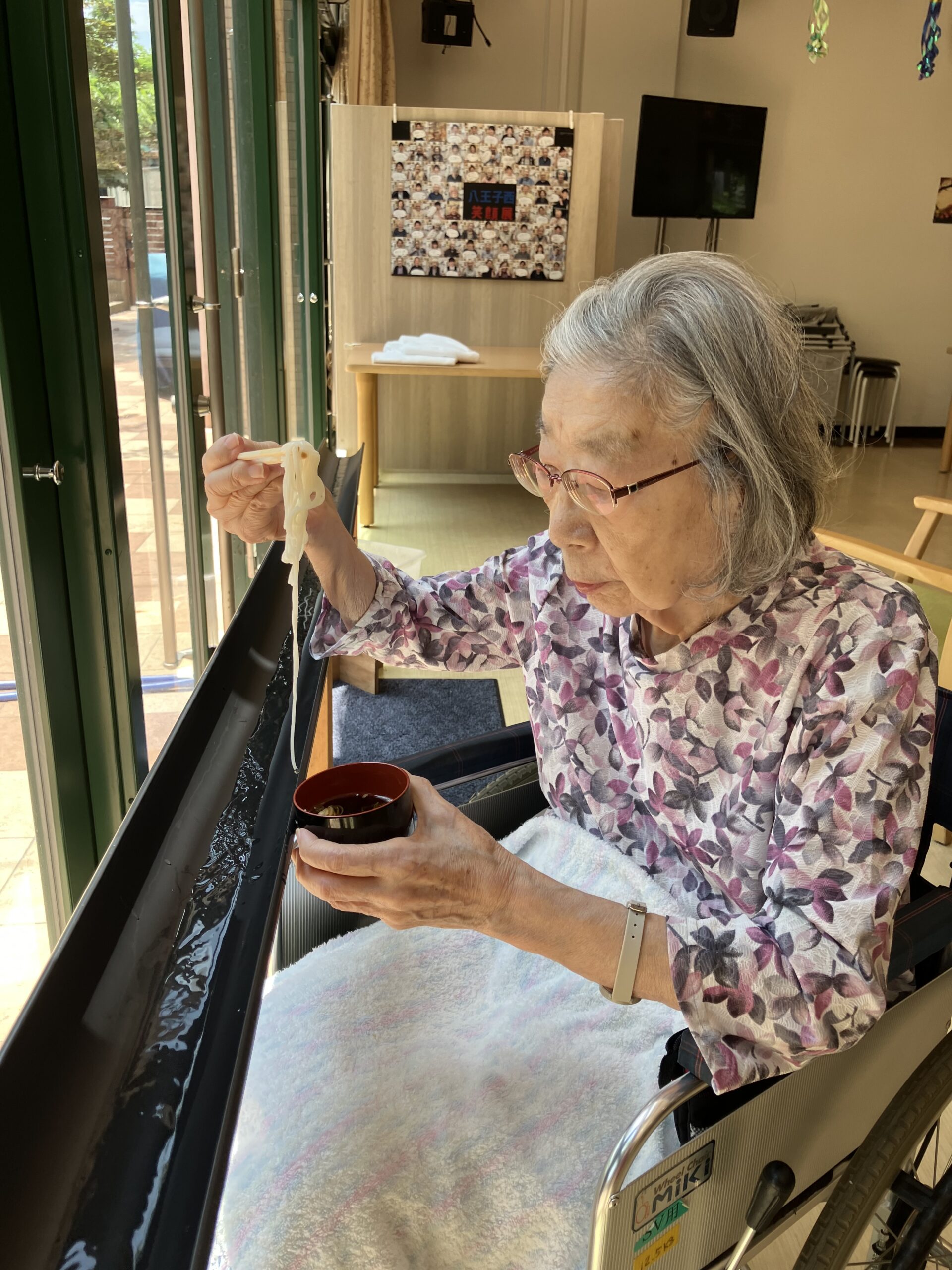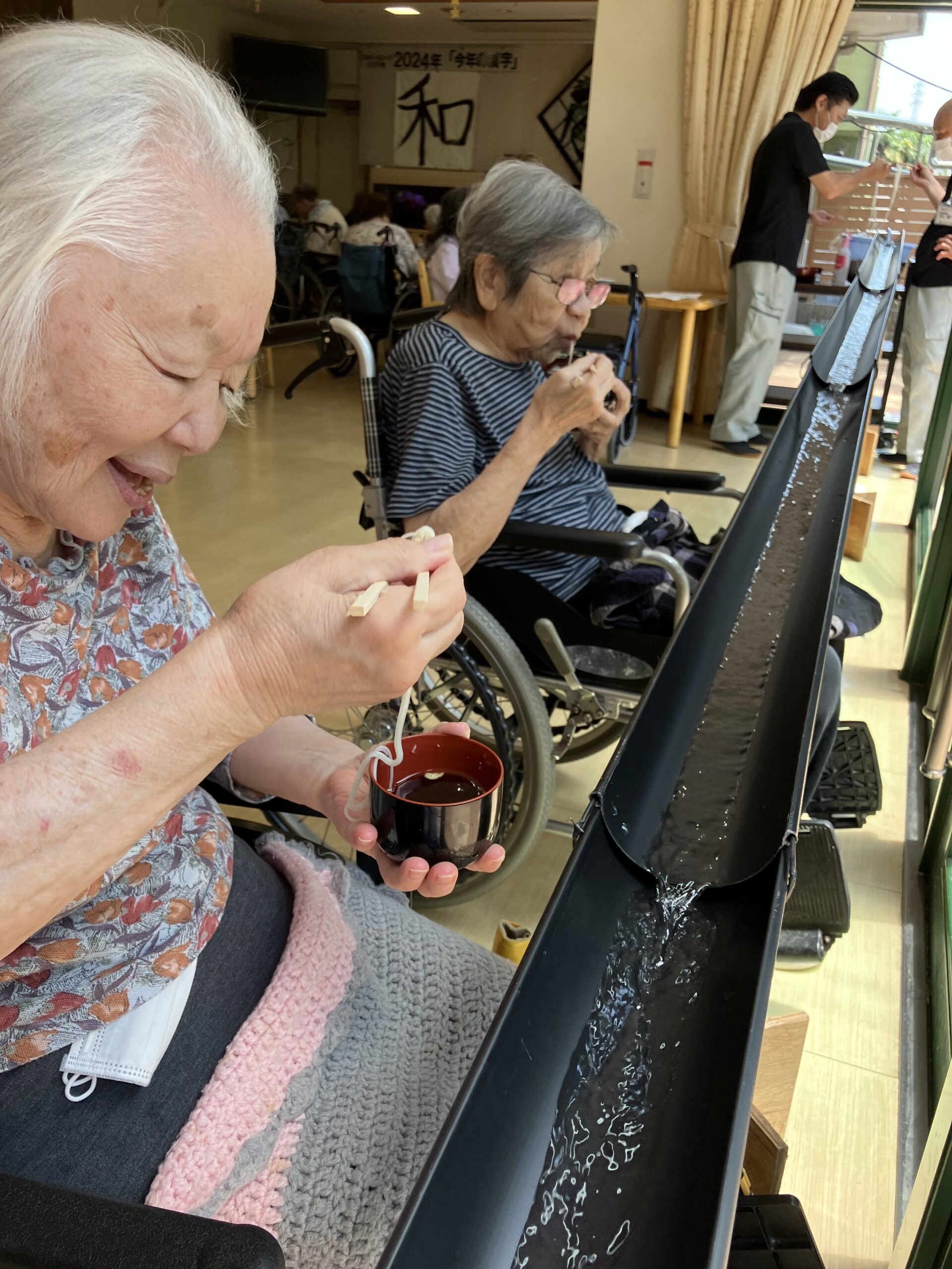昼食には流しそうめんを行いとても楽しまれておりました♪