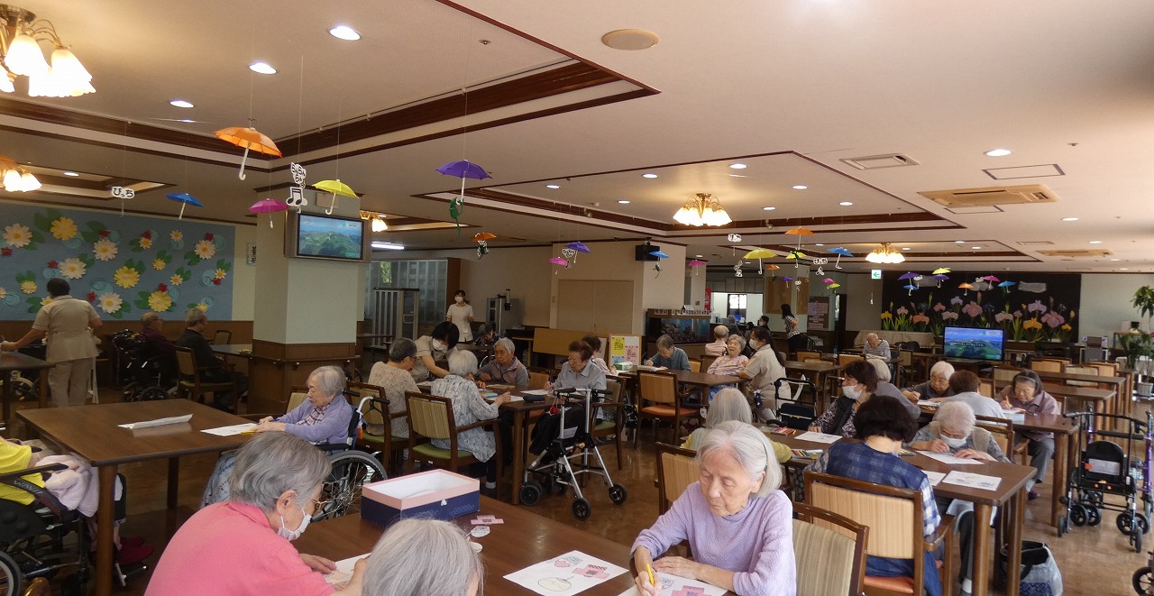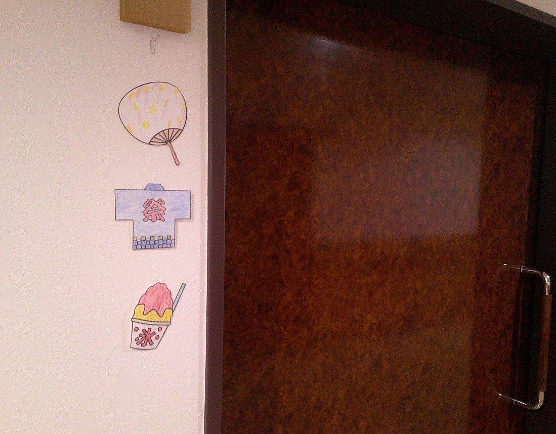 納涼祭を前に、居室ドアに飾る夏飾りガーランドを
