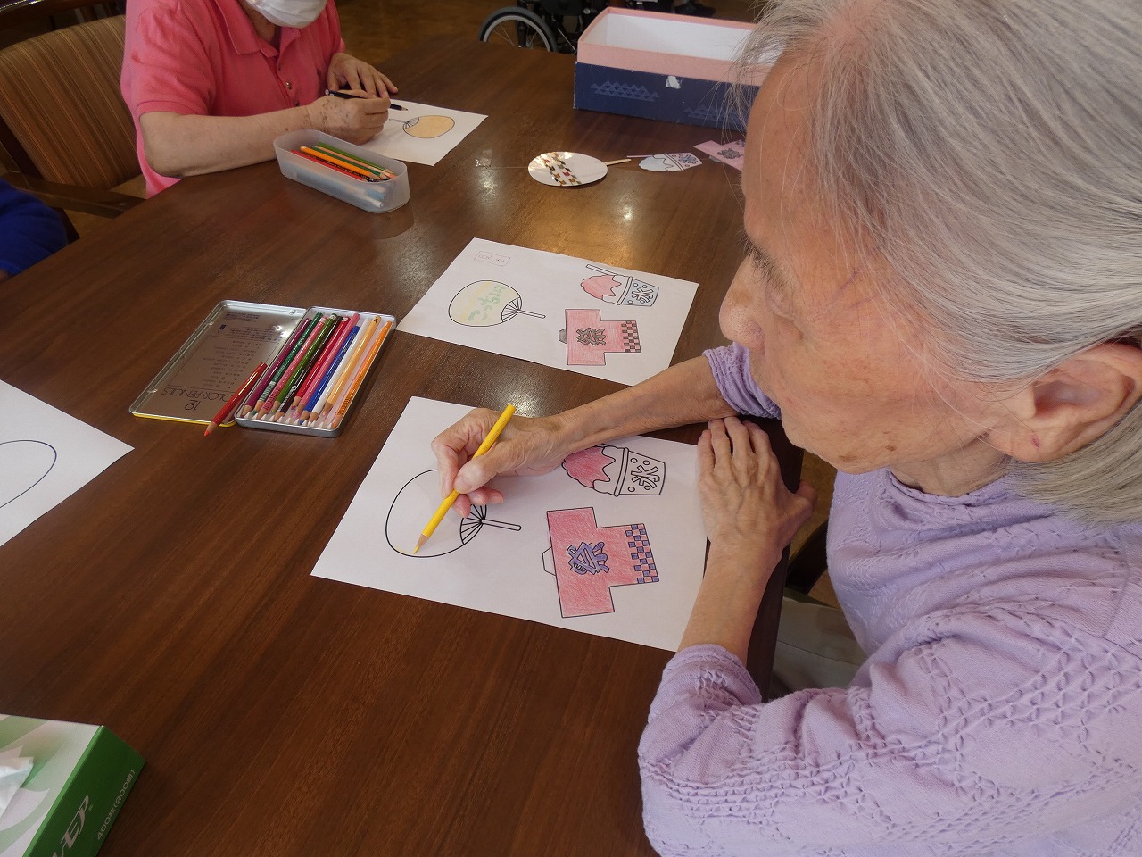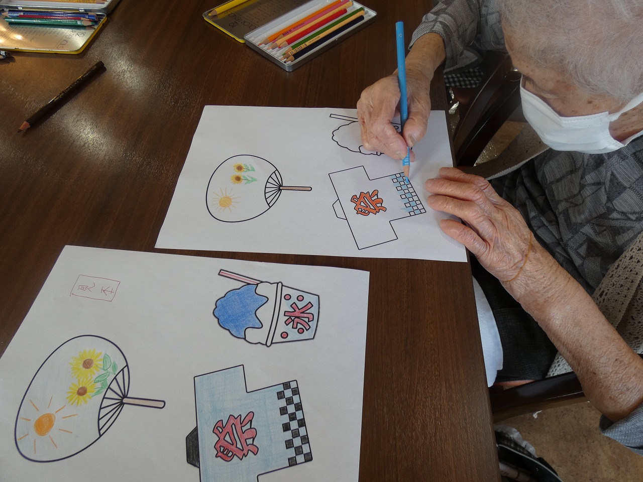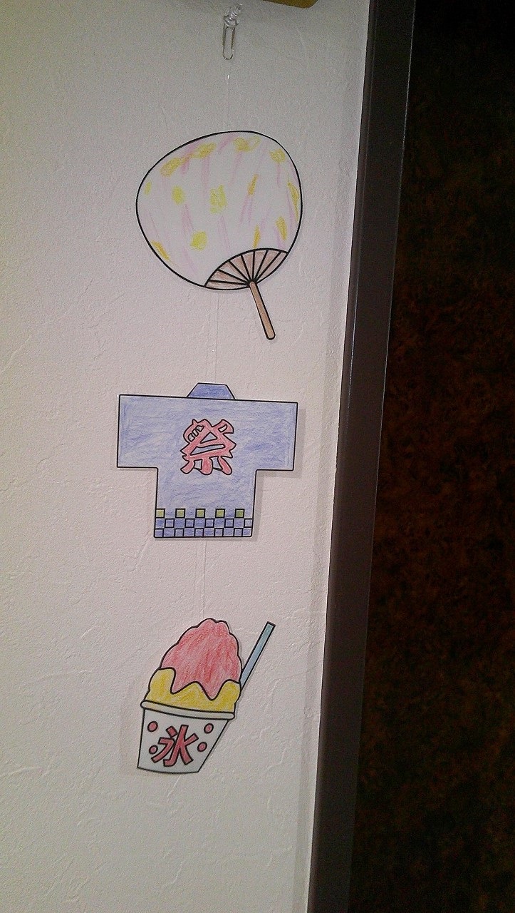 居室ドアに飾り、今年の納涼祭を盛り上げます♪