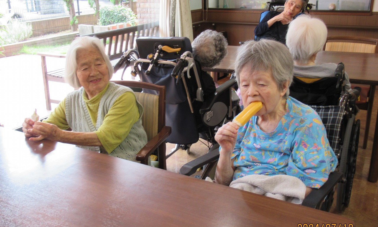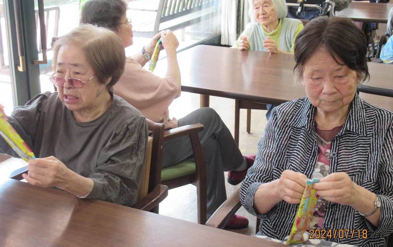 午後のひと時、冷たいアイスキャンディーを頬張り、