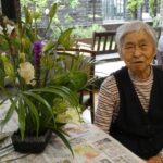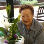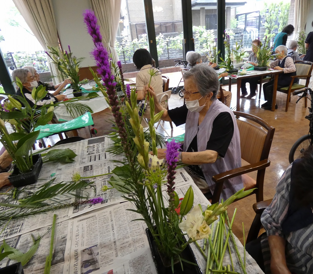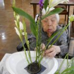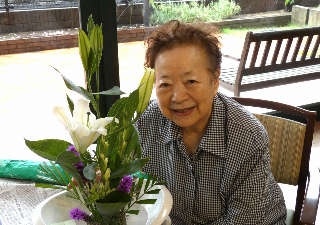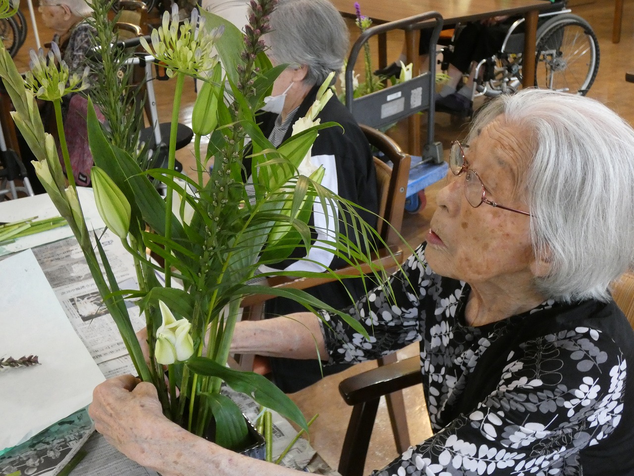ユリ(白) リアトリス(紫) アレカ(緑)