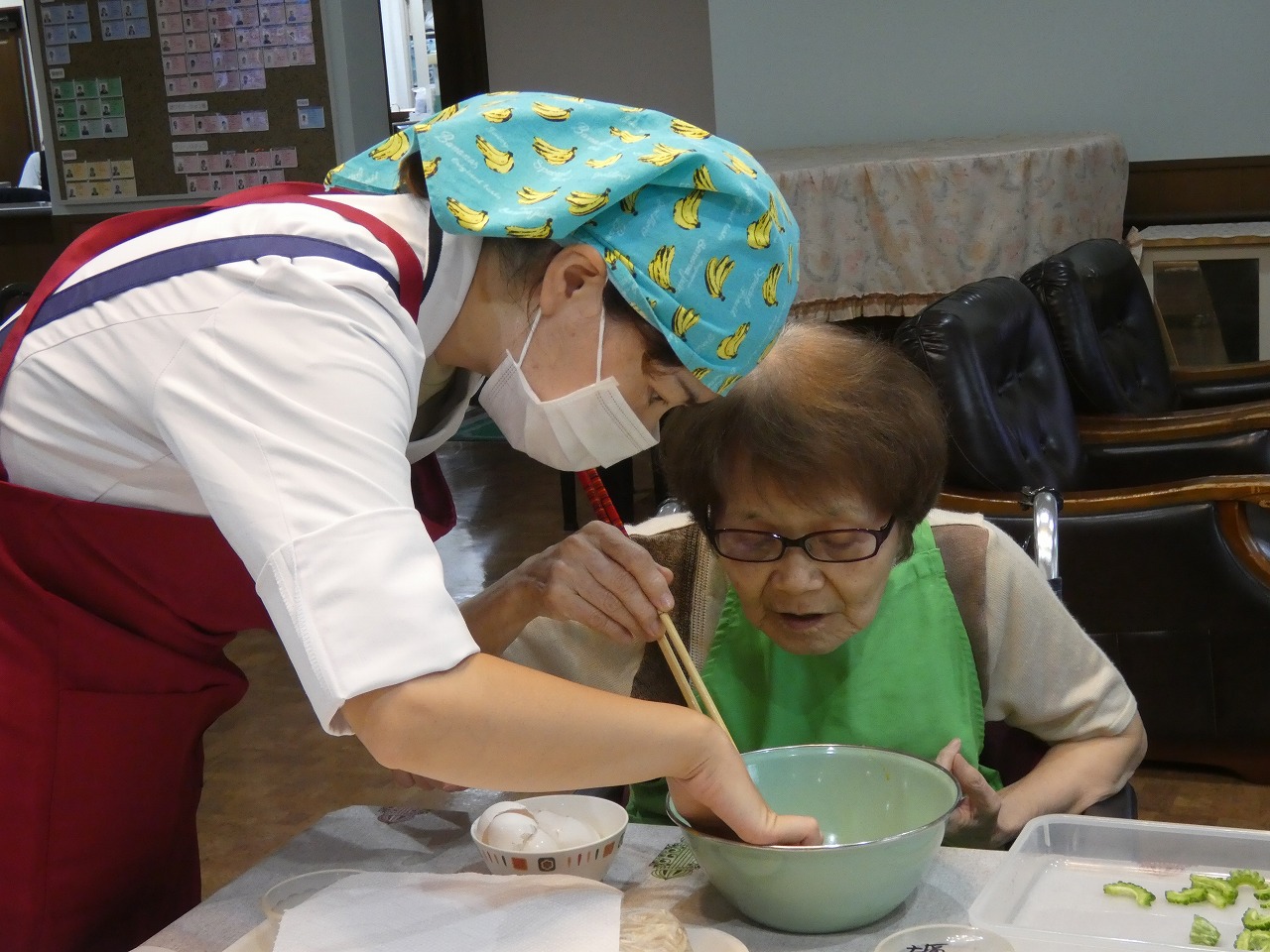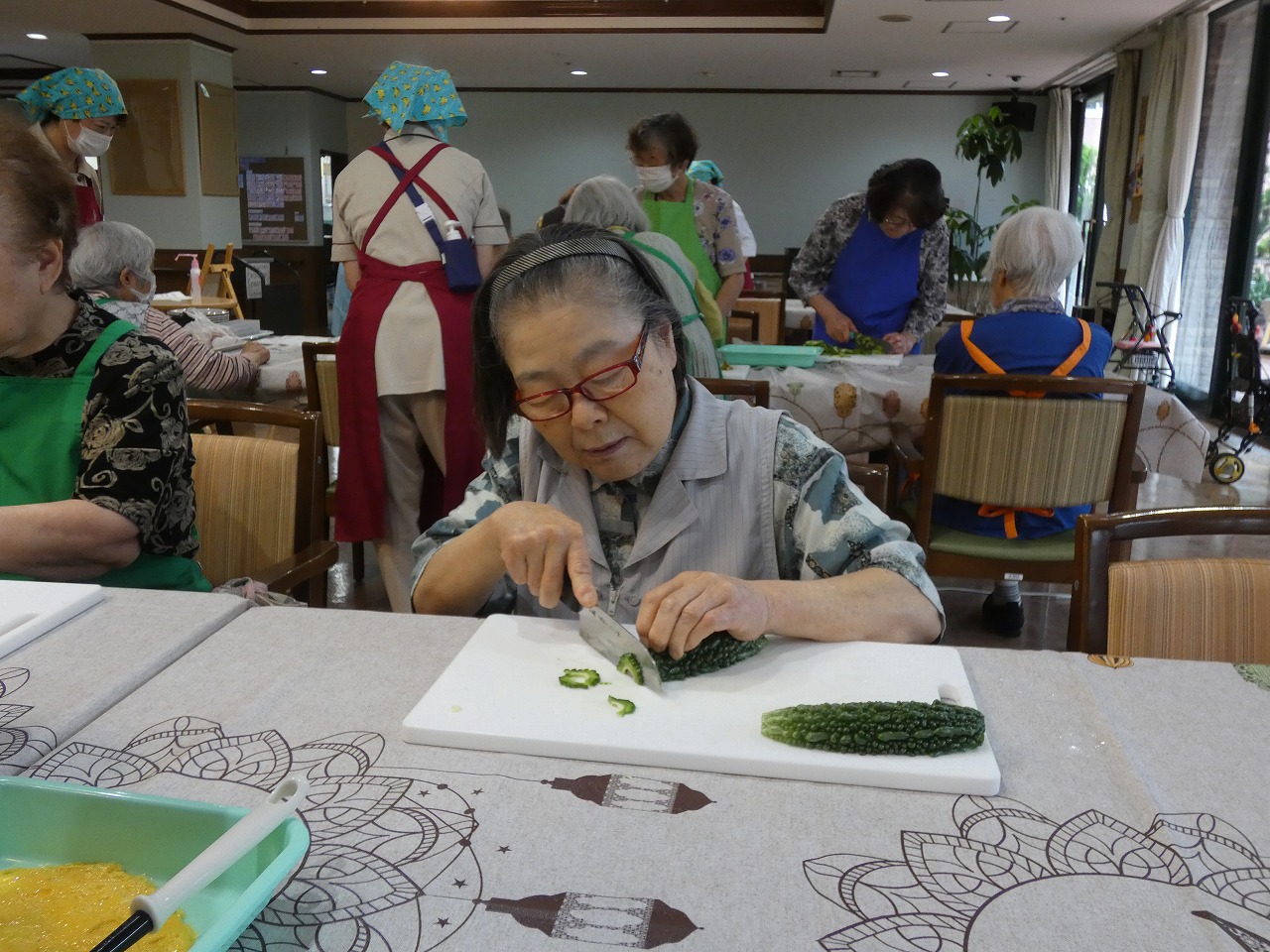 そして、ゴーヤのワタを取りサクサクとスライス!担当の方(^^♪