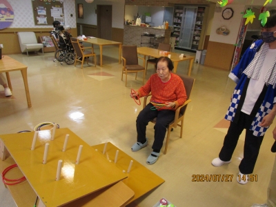 2階では輪投げ、3階では射的、4階ではヨーヨー、5階では綿あめとかき氷をご用意しました。