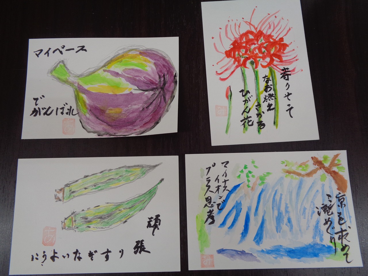 お好きな見本を選んでいただき、ハガキに描いていただきますが、皆様なかなか見本が決まらず、悩まれていました。