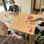 色とりどりの画用紙を丸めていただくと「これが花火になるの~?」と皆様不思議そうでしたが、出来上がりを見てとても喜んでくださいました!(^^)!