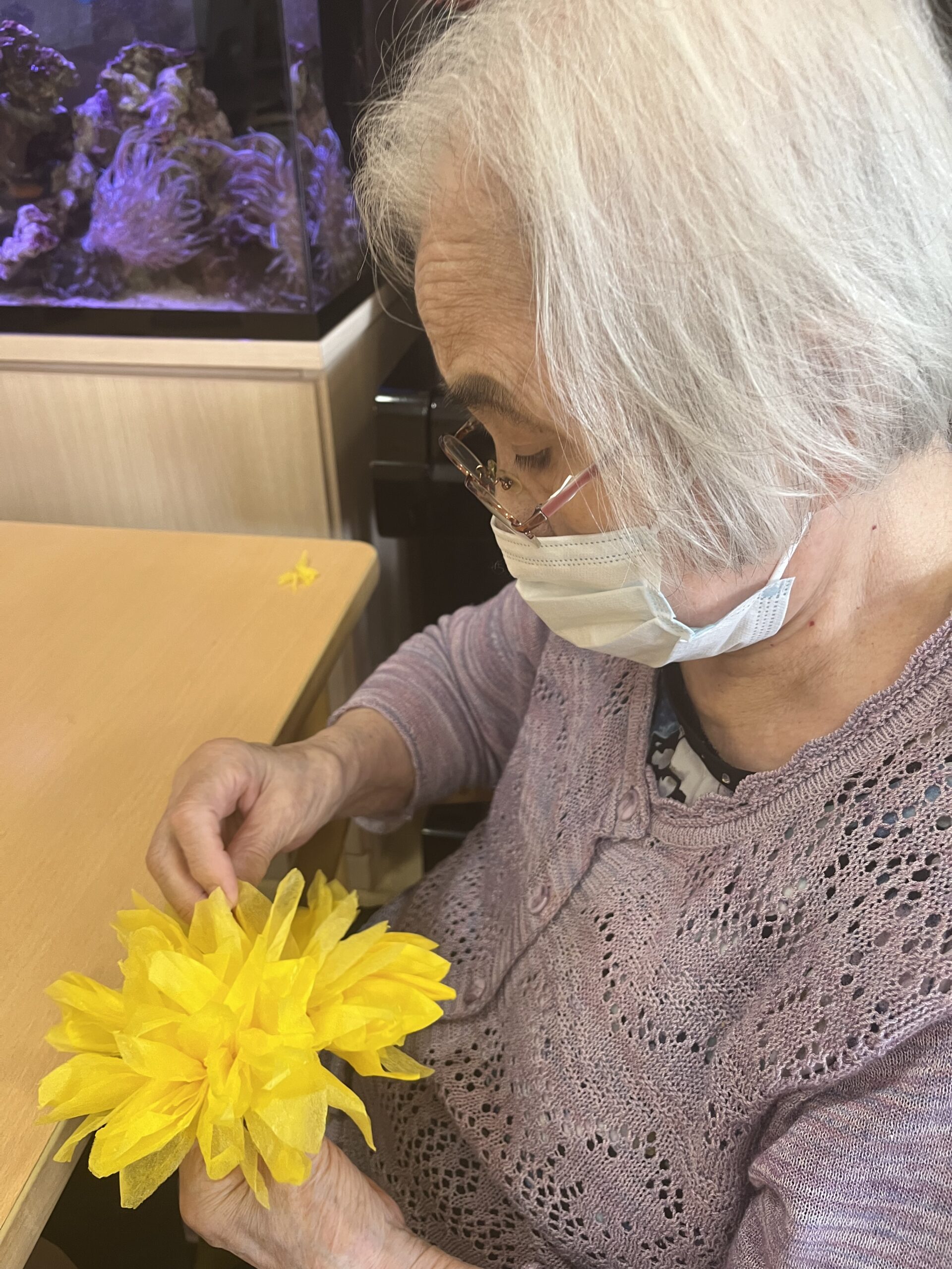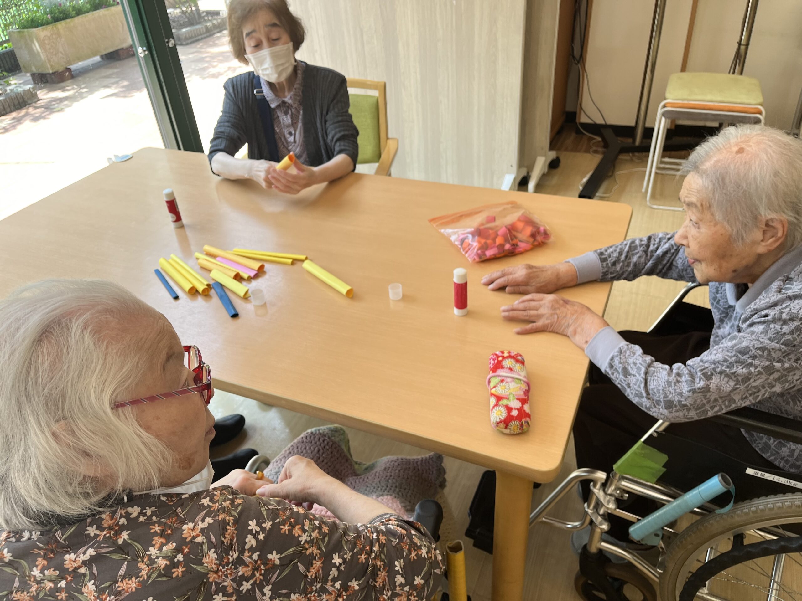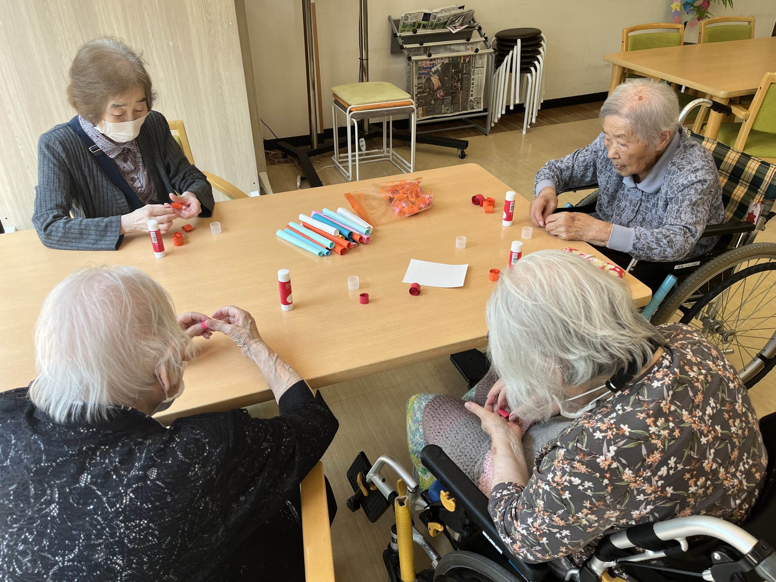 色とりどりの画用紙を丸めていただくと「これが花火になるの~?」と皆様不思議そうでしたが、出来上がりを見てとても喜んでくださいました!(^^)!