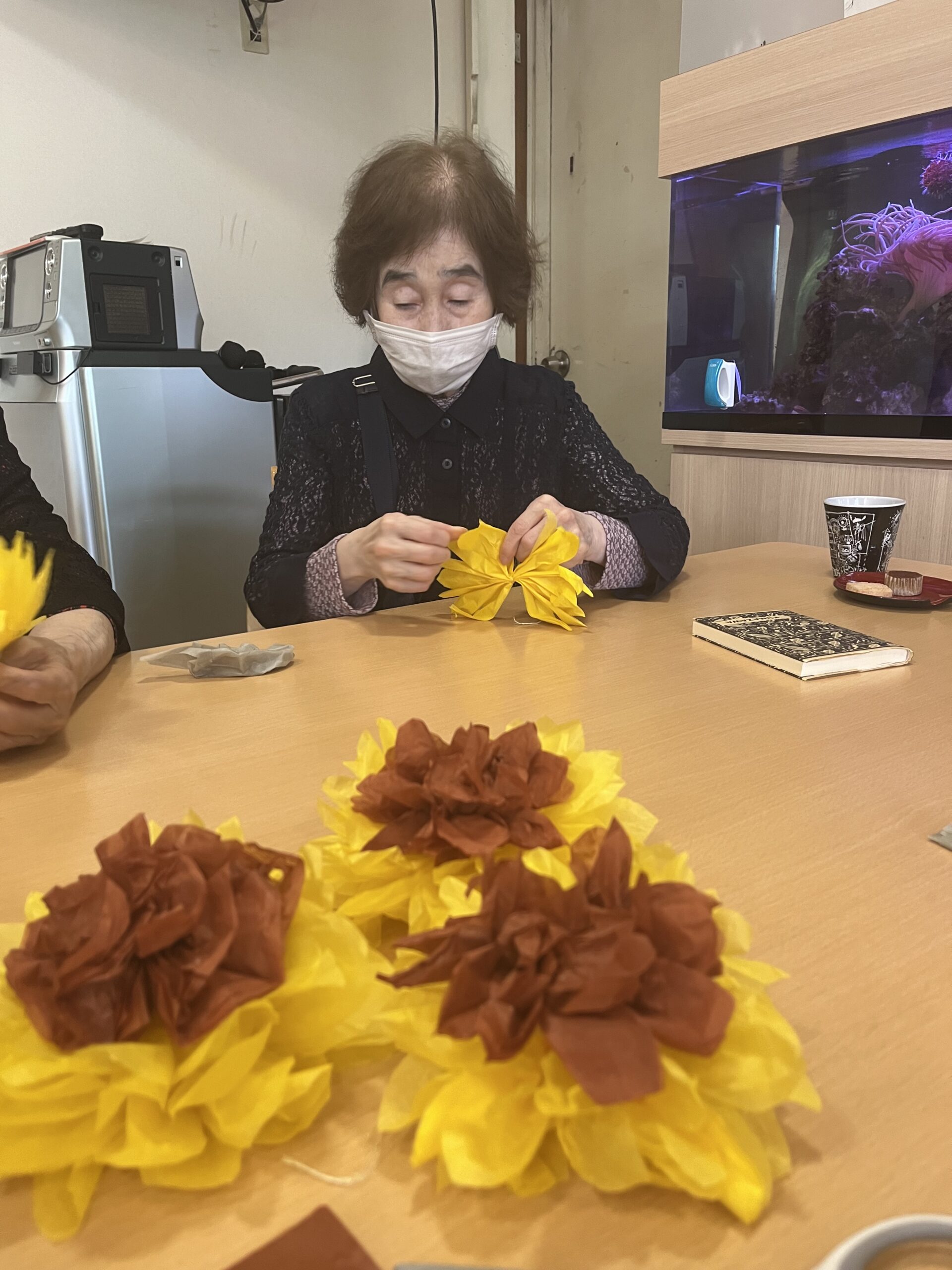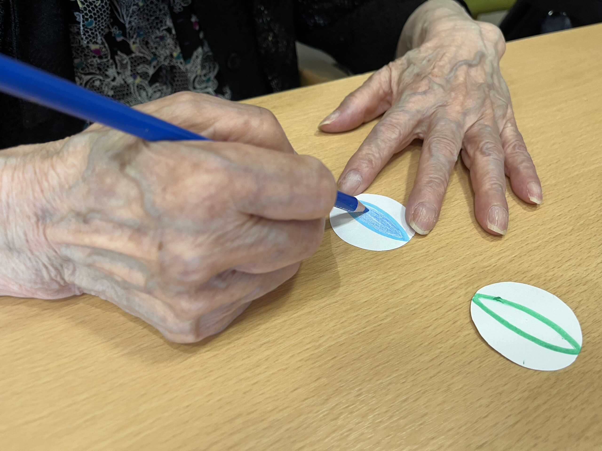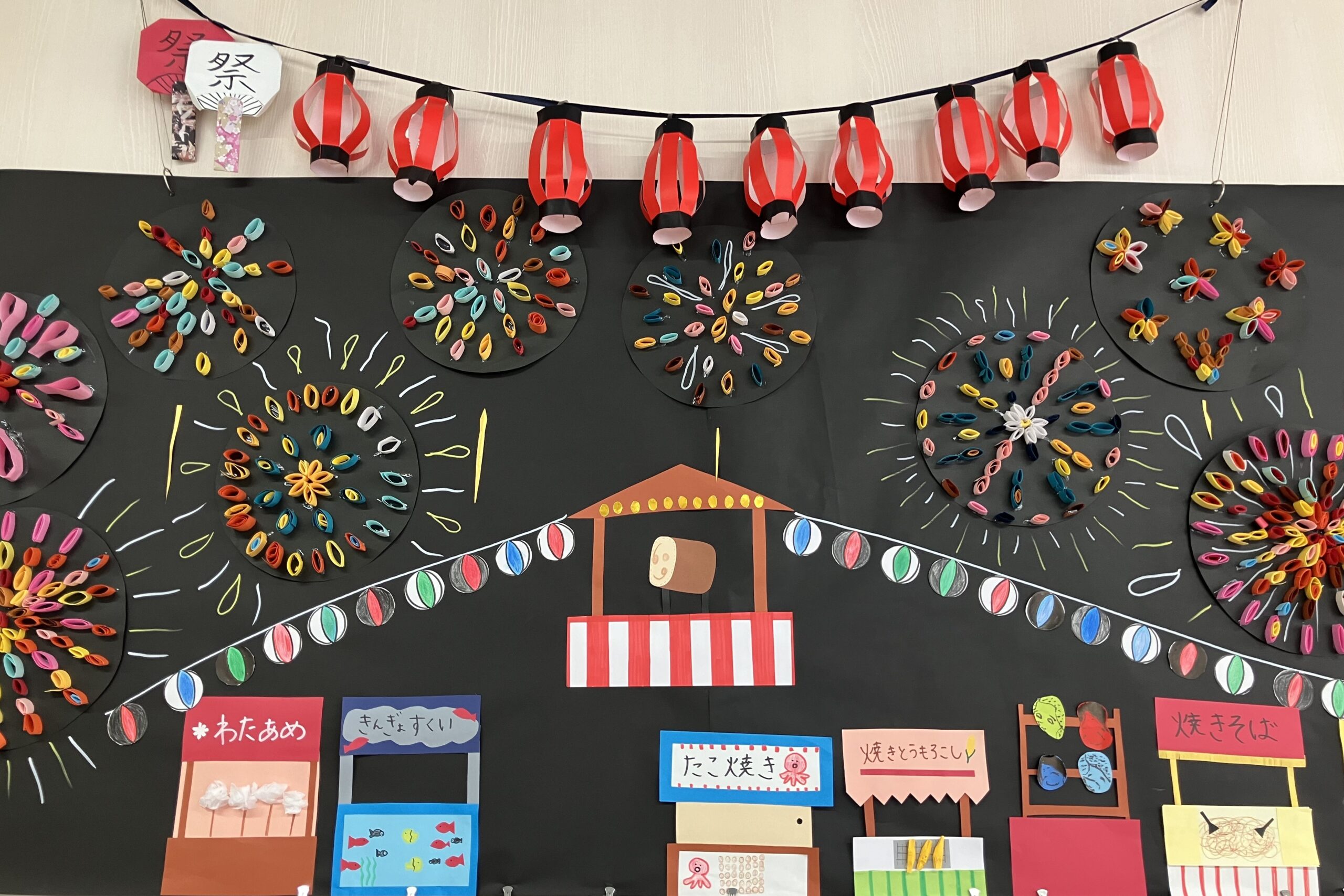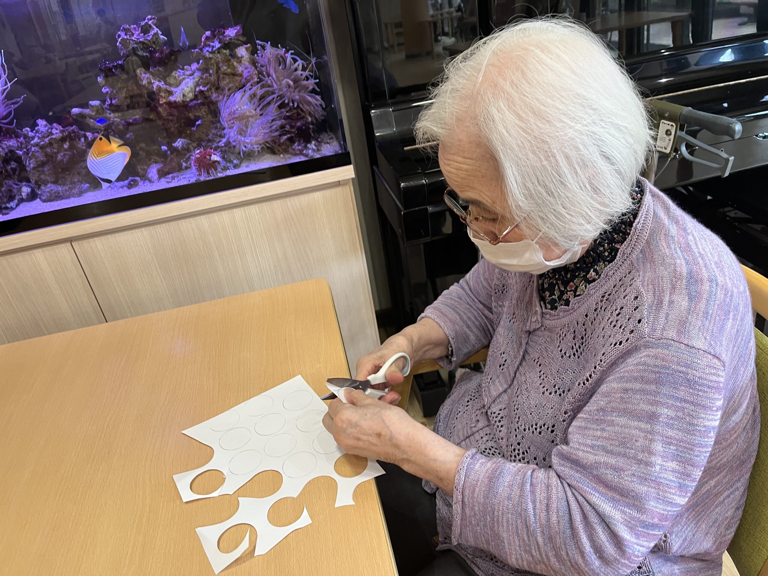 色とりどりの画用紙を丸めていただくと「これが花火になるの~?」と皆様不思議そうでしたが、出来上がりを見てとても喜んでくださいました!(^^)!
