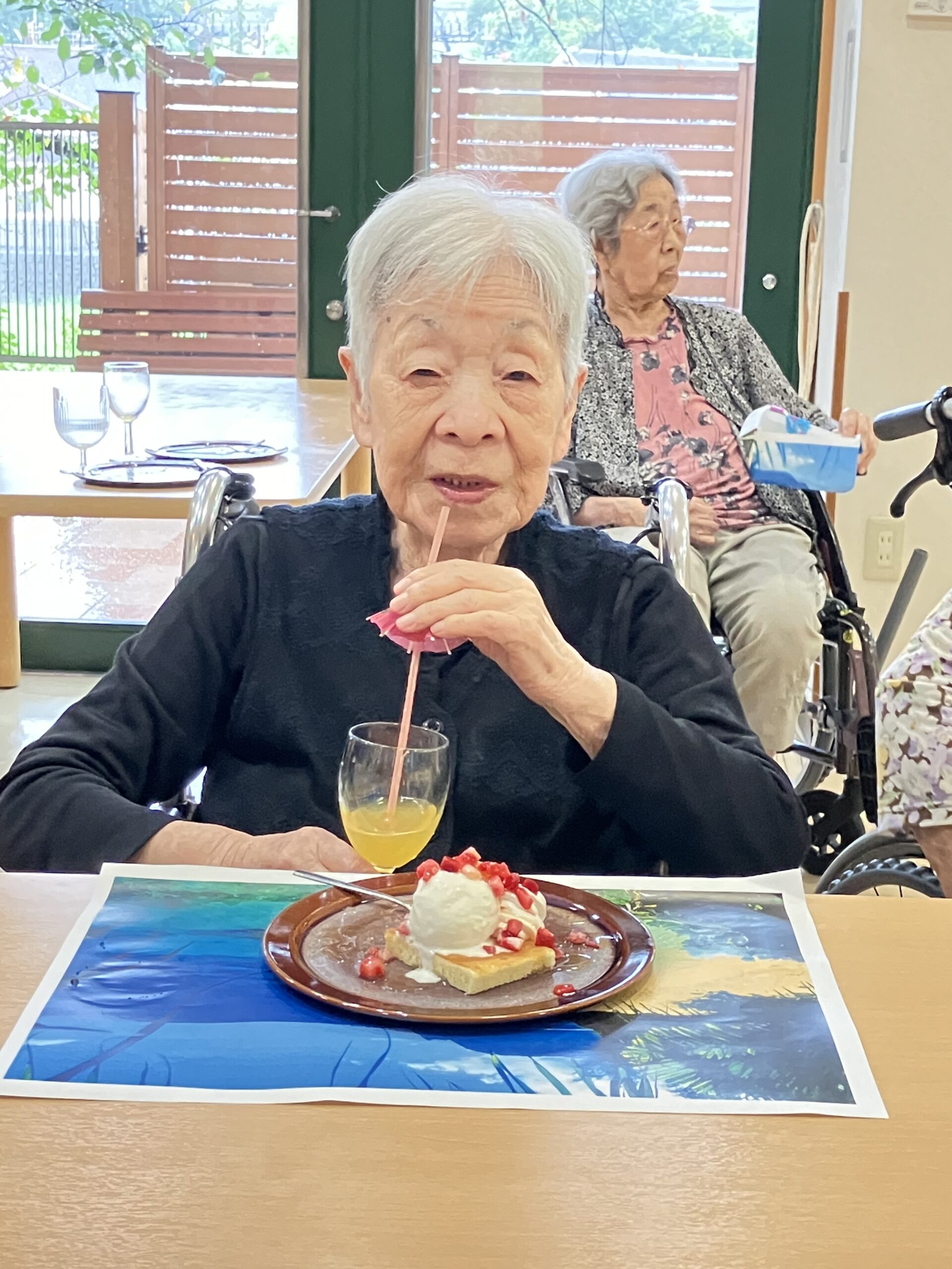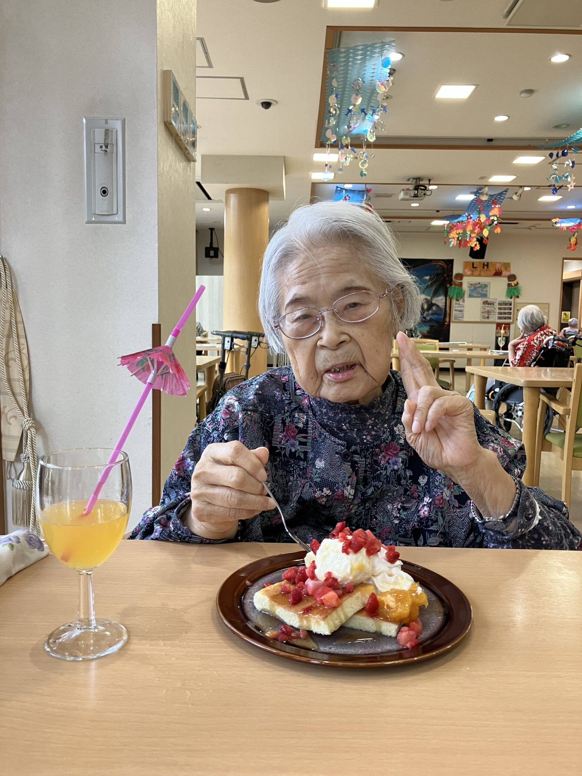 おやつには、ボリュームあるハワイアンケーキを手作りし提供。