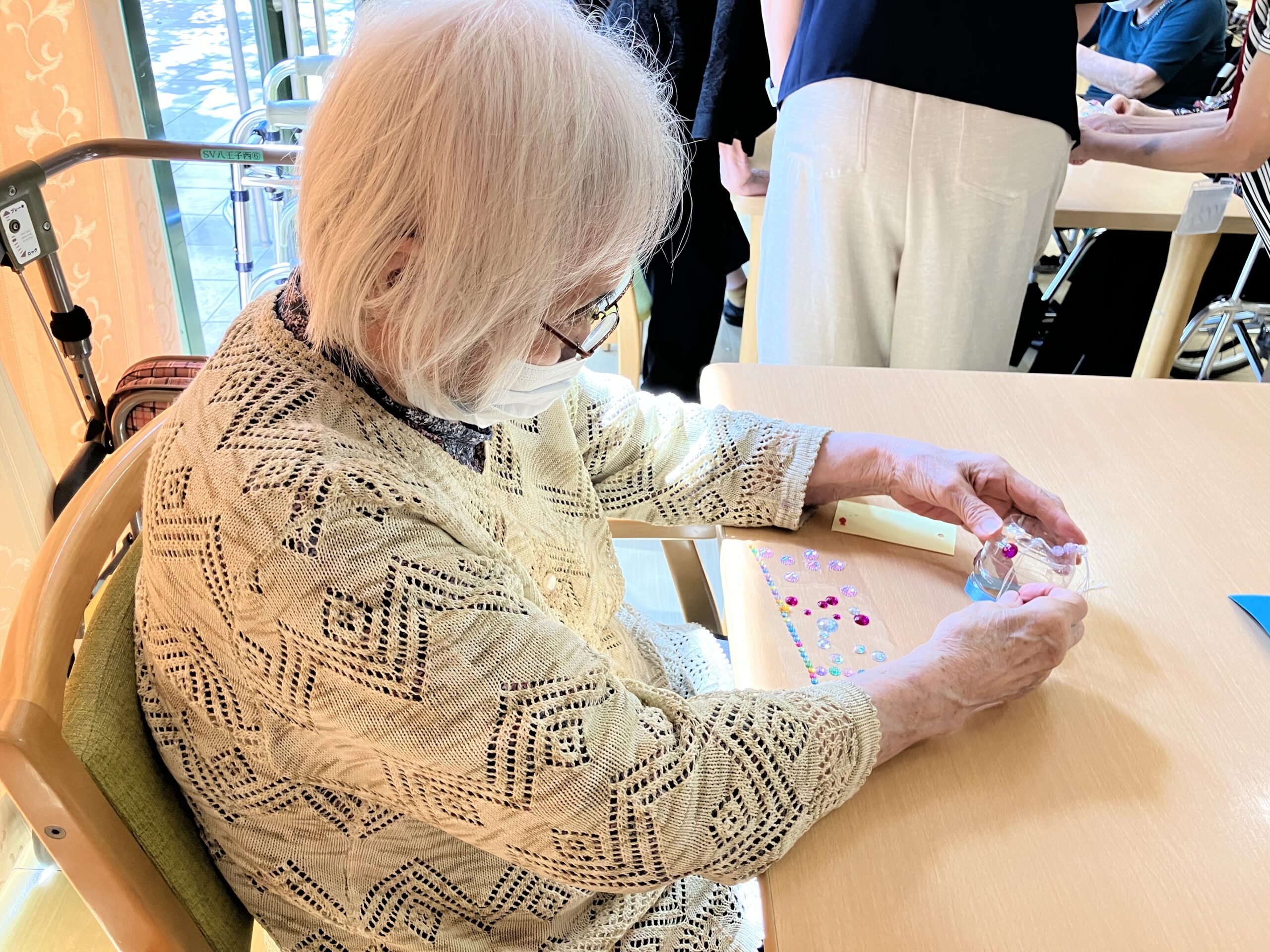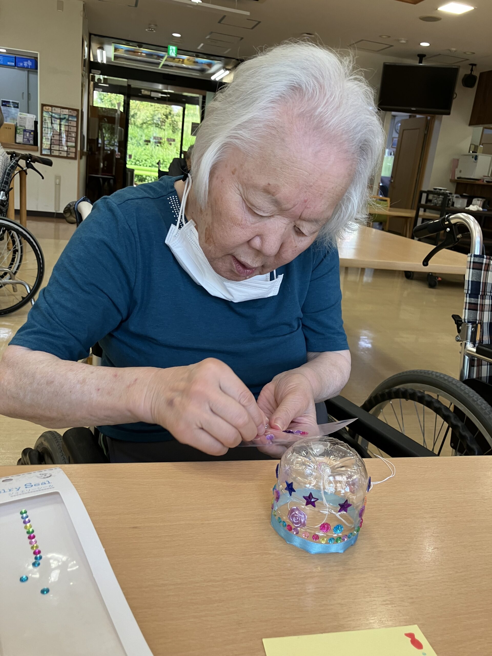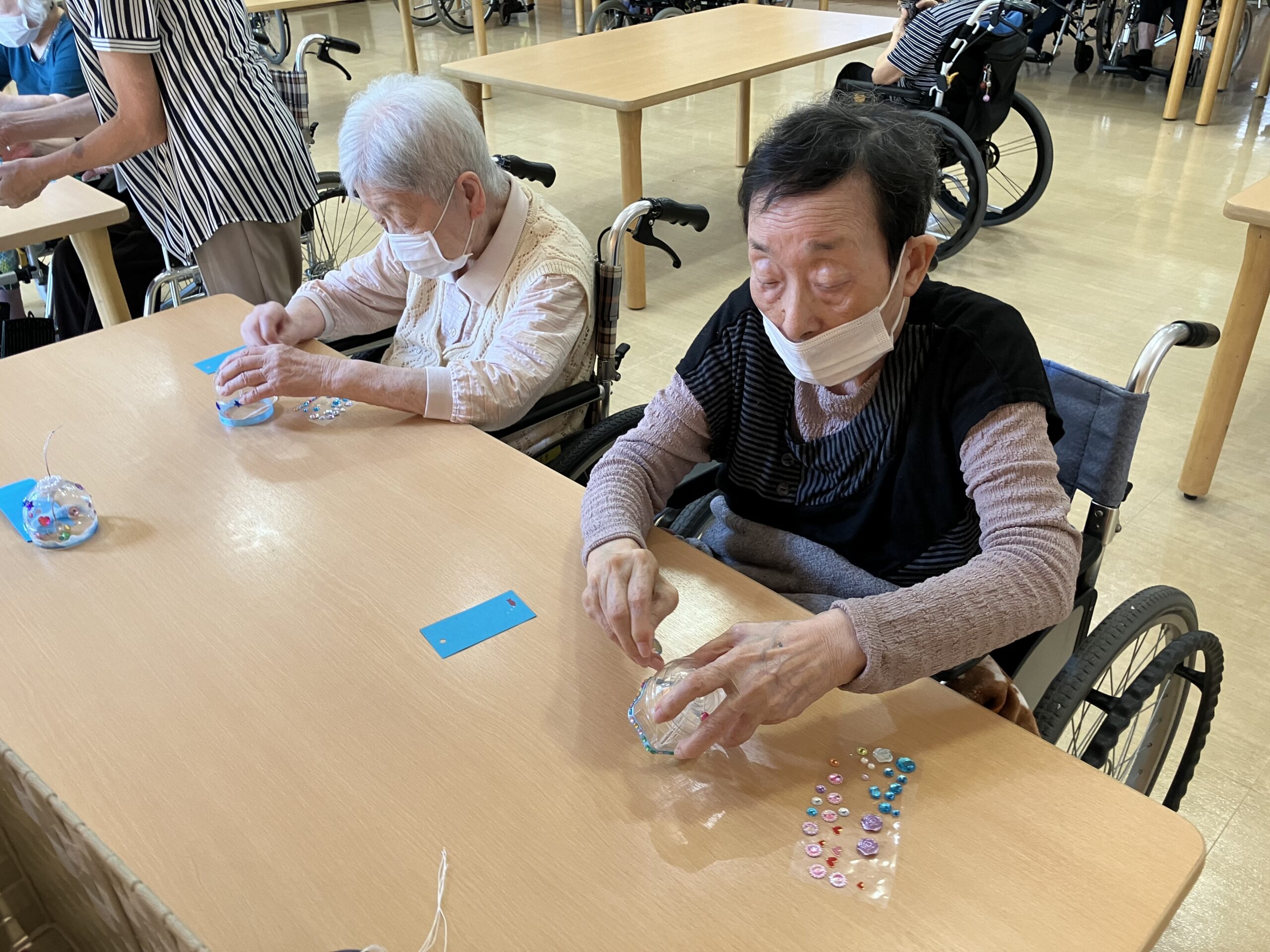 土台となる部分はペットボトルを使用し、好きな飾りを付けていきます♡「何色にしようかな~」と皆様楽しそうに取り組まれ、