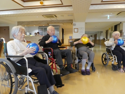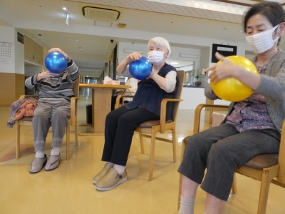 その後、ご入居者同士で向き合い、キャッチボールを行っています。