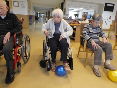 職員を真似て上下左右と、リズミカルにボールを