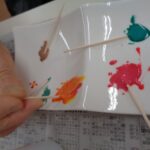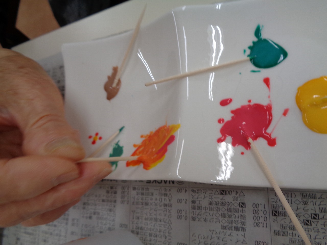 楊枝を使って、小瓶にちょんちょんと小さなイラストを描きました。皆様楽しんで描いてくださいました♬