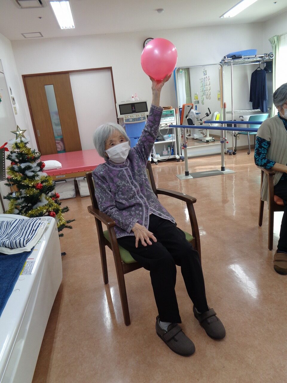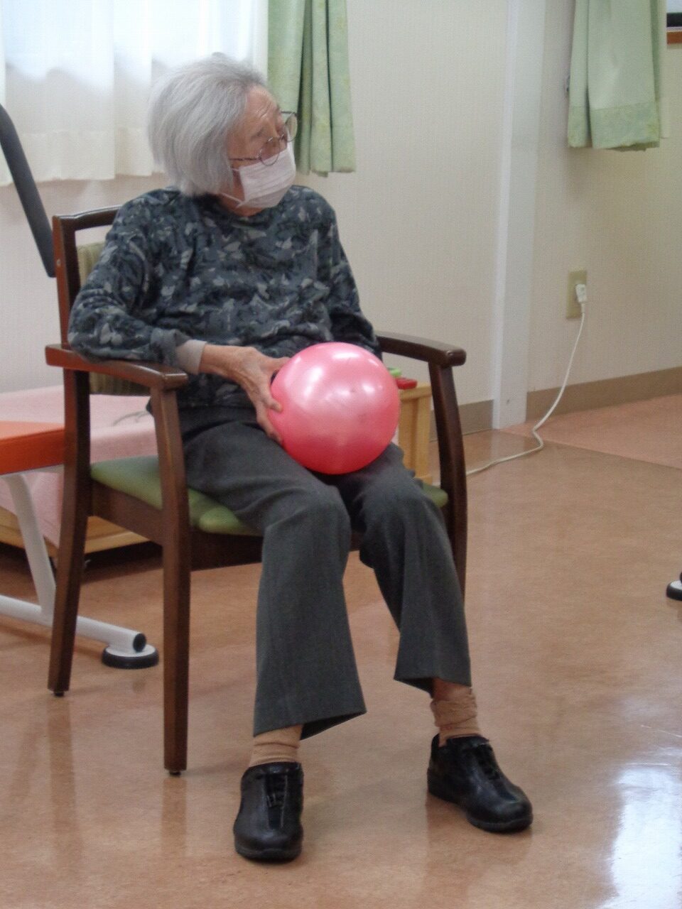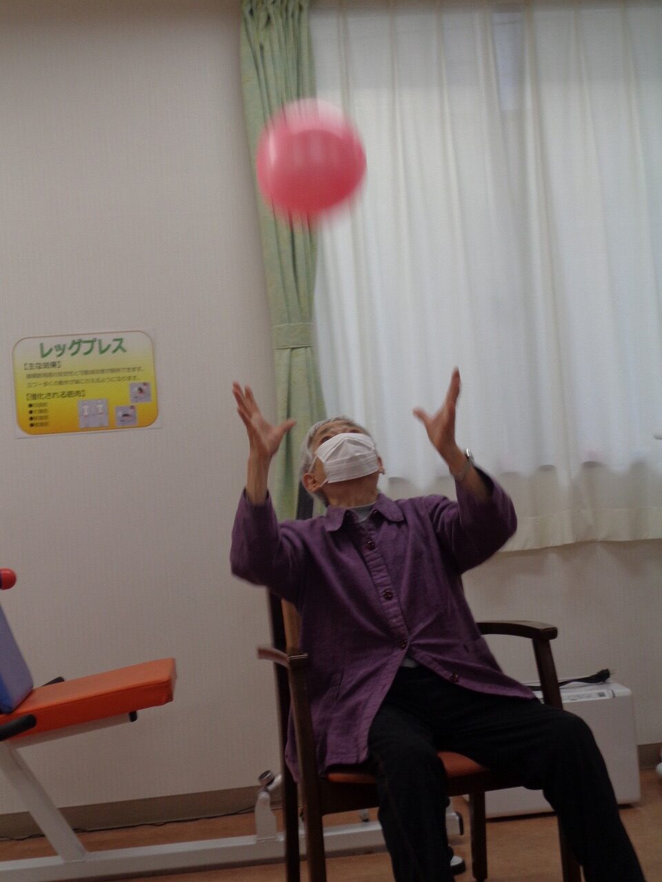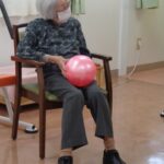 本日は日野リハビリ室にて運動クラブを開催し、ボールを使用して、全身の体操を行いました。初参加の方もいたので、無理なくゆっくりと運動しました。キャッチボールを行った際は、応援と拍手が送られ、賑やかでした。運動後は「汗かいちゃった」「ボールなんて久々に触ったから楽しかった!」と笑顔でお話し下さいました。