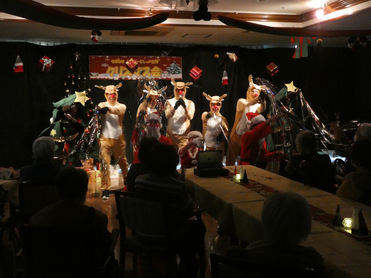 ハンドベルの清らかな音、職員のクリスマスダンスショー(^_^;