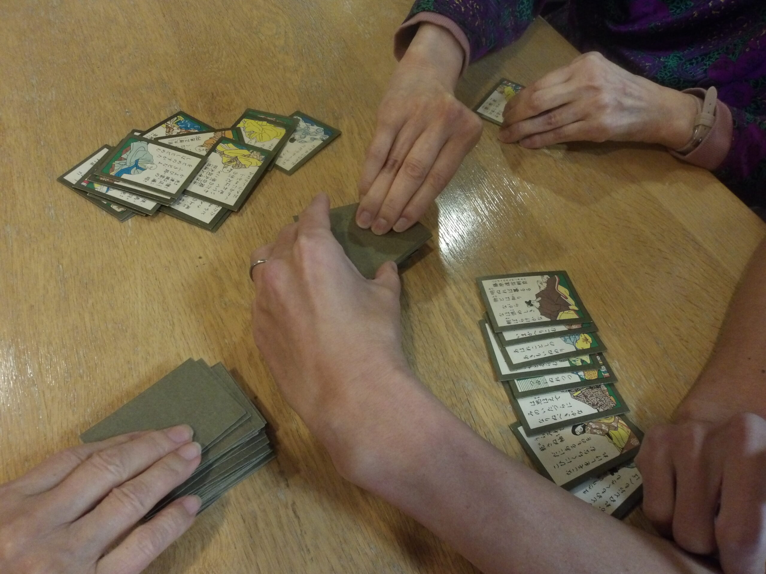 福笑いに羽根つき、かるた、百人一首、駒回しにけん玉。