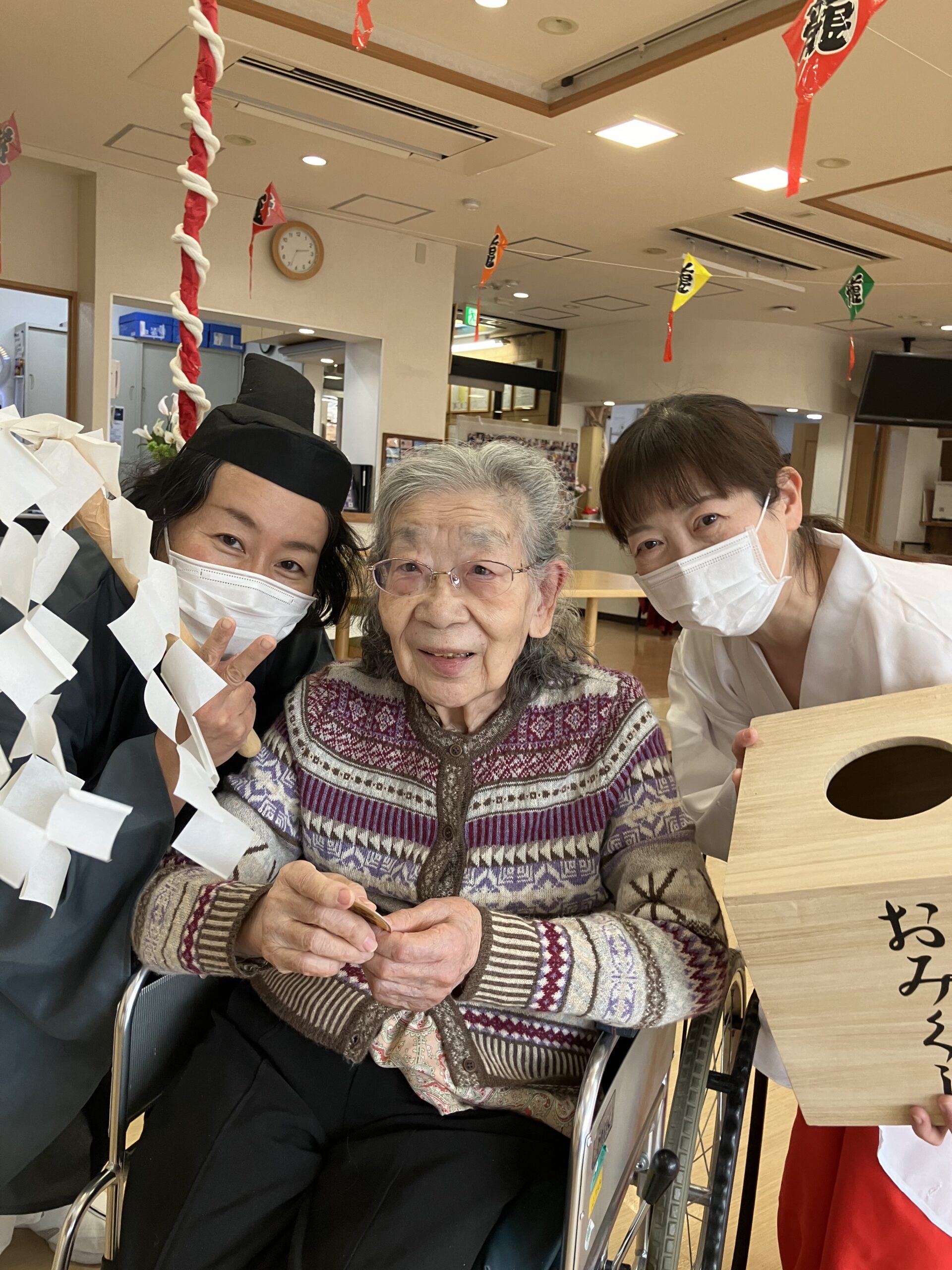 また、おやつ前に初詣イベントを行い、お賽銭を入れ、本坪鈴を鳴らし、おみくじを引きました!