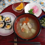 太巻き用に卵焼きを焼いてから、野菜を切って、炒めて、煮込んで