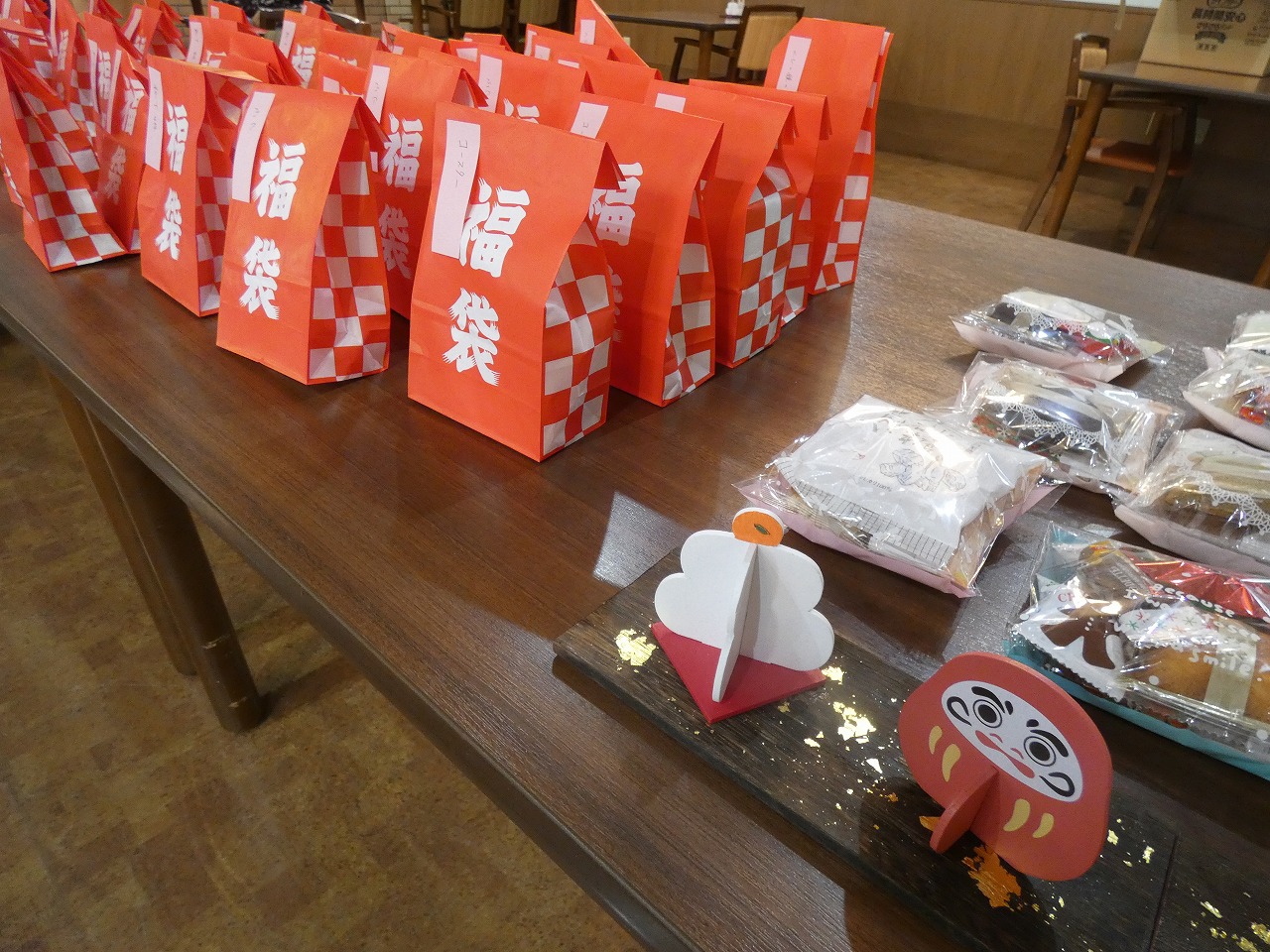 赤い福袋に入った商品をいただくと、本当に福もいただいた気分になります♪