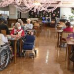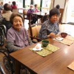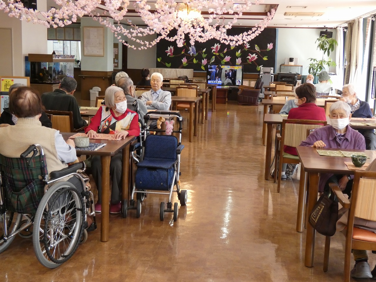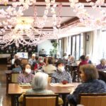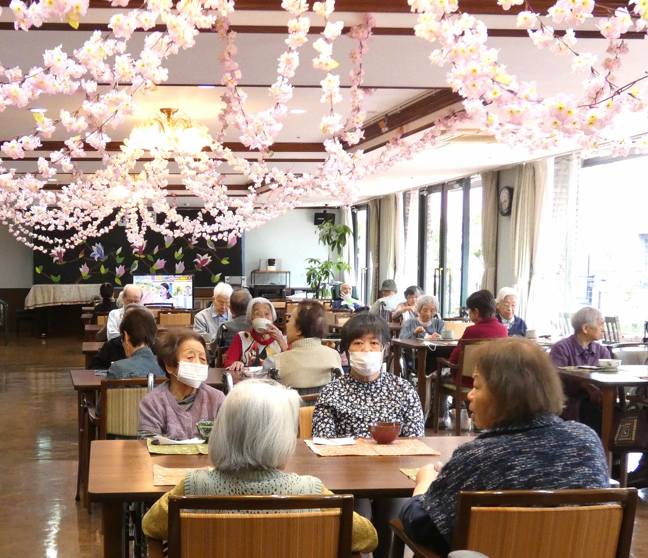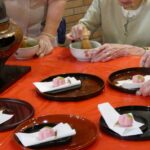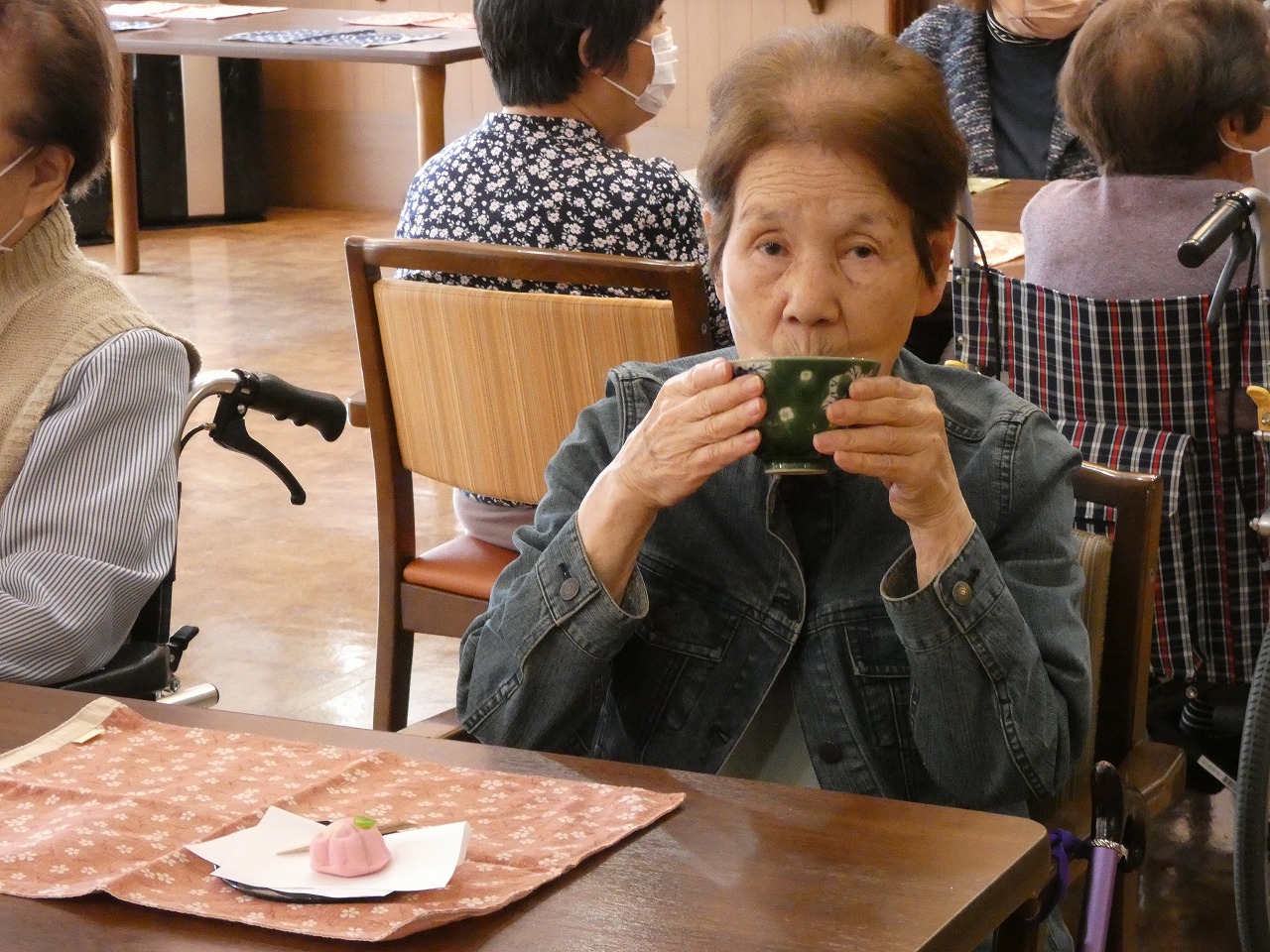 桜飾り満開の下でいただくお抹茶とお菓子、