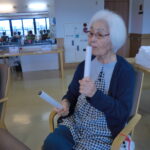 大きく手を伸ばしたり、ラップの芯を持ち肩を叩いたりと、
